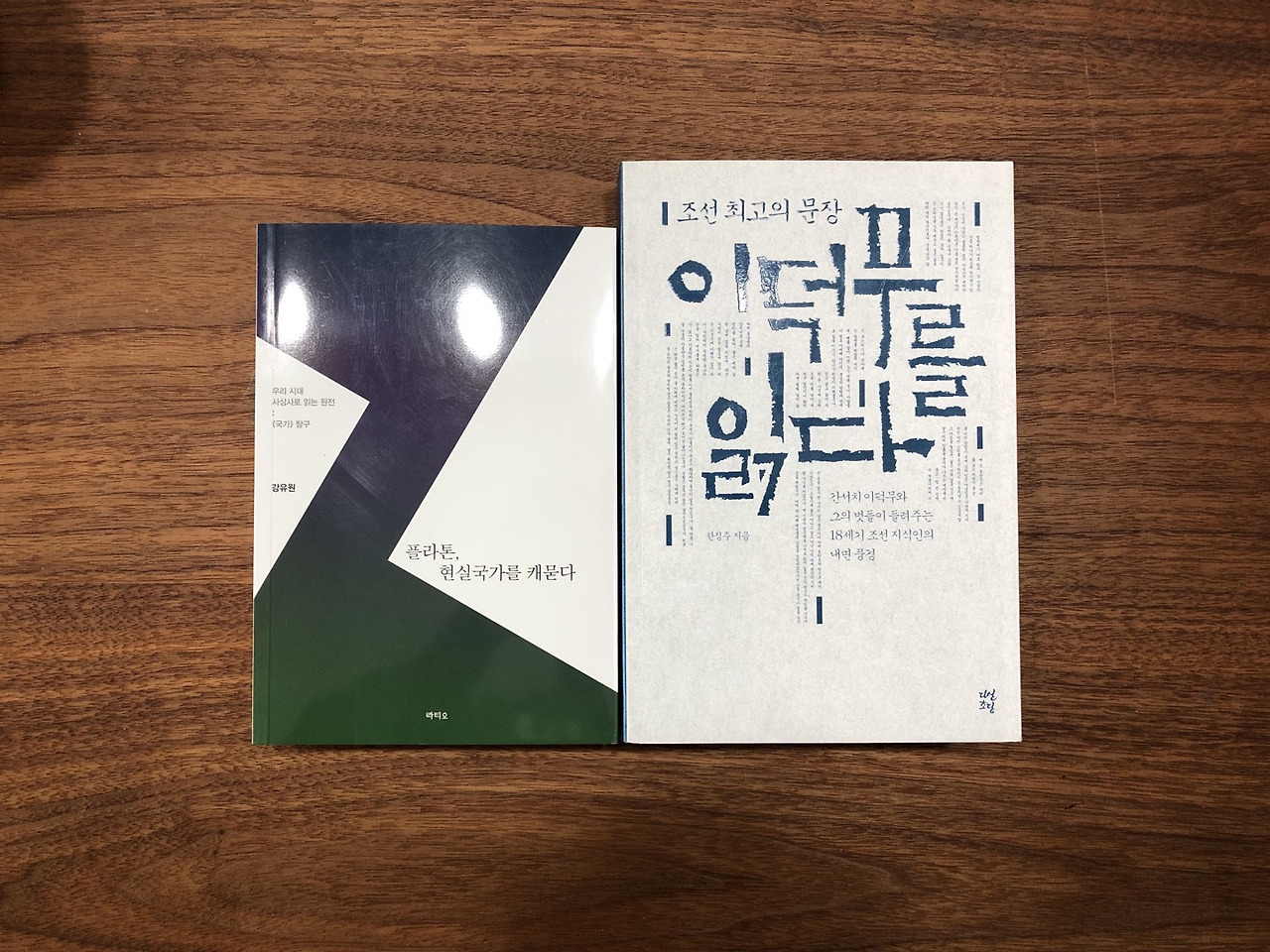 2023년 2월 16일에 주문한 책 두 권이 2월 18일 오후에 도착했다. 오래 기다렸던 책이어서 반가운 마음에 이 둘을 짧게 소개한다. 하나는 강유원 선생의 <플라톤, 현실국가를 캐묻다>이고, 다른 하나는 한정주 선생의 <조선 최고의 문장 이덕무를 읽다>이다. 앞의 책은 2023년 2월에, 뒤의 책은 2016년 12월에 각각 출간됐다.