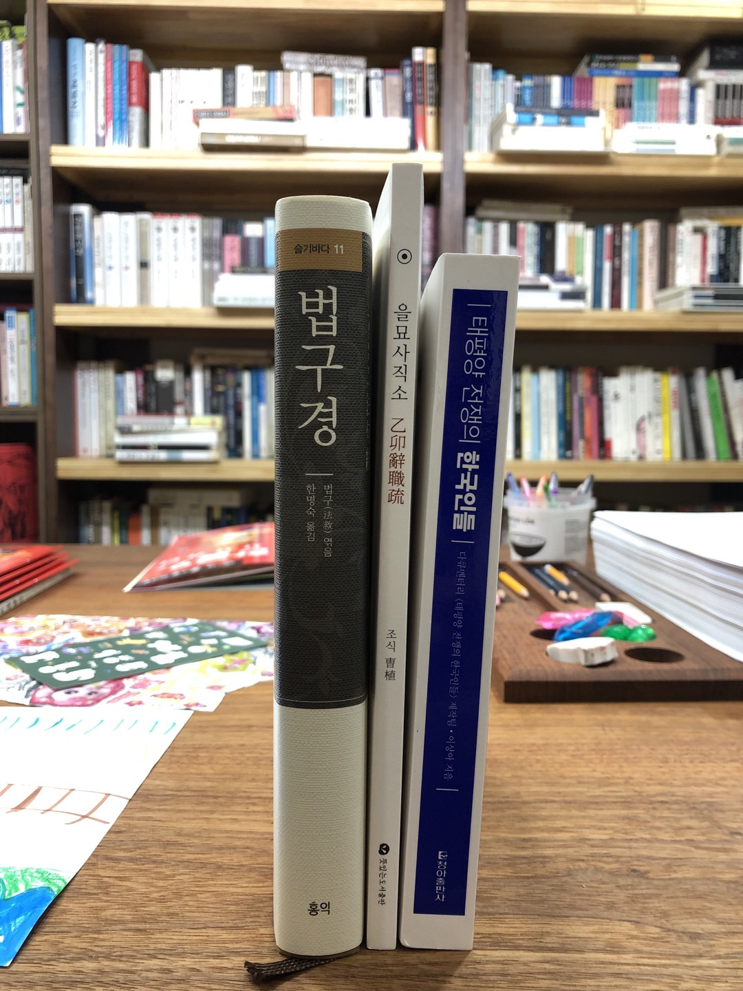 책 3권을 받았다. <법구경>, <을묘사직소>, <태평양 전쟁의 한국인들>이 차례로 도착했다. <법구경>은 동생에게 사달라고 한 것이고, 뒤의 2권은 어머니께 부탁한 것이다. 본가 식구들에게 책을 요청한 것은 이번이 처음이다. 이창동 감독의 영화를 좋아하는 동생에게 <밀양> 각본집을 보냈더니 너무 재밌다는 반응을 전해와 그러면 너도 내게 선물 하나 해달라고 해서 받은 게 <법구경>이고, 어머니께 <런던에서 온 평양 여자>를 보내드린 후 그러면 연습 삼아 책 주문을 한번 해보시겠느냐는 제안으로 받은 게 <을묘사직소> 등 2권이다.