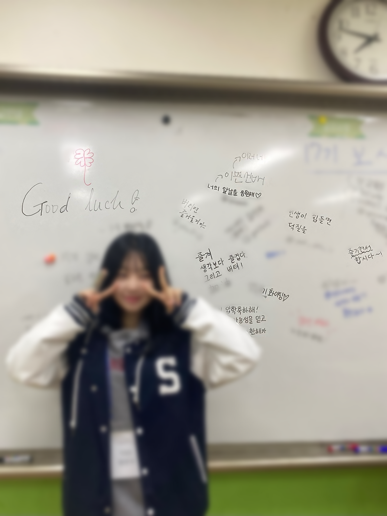첫 룸메였던 후지산(별명)이 칠판을 배경으로 열심히도 사진을 찍어주었다. 후지산은 이틀의 밤을 책임져준 고마운 친구였다. 밤마다 어쩜 국제고는 죄다 똑똑한 아이들로 채워놓았을까, 내 입 속의 영어는 50년쯤 후에 나올 생각일까, 원어민 선생님은 분명 한국어를 알아들으시는 게 분명하다 등등 별의별 불평불만을 다 들어주었기 때문이다. 사실 생판 모르는 남과 좁아터진 방에서 단 둘이 지내야 했던 2박 3일이 불편하기도 했다. 방이 가뜩이나 좁는데 침대, 옷장, 책상, 선반이 두 개씩 자리 잡고 있었다. 화장실 소리는 침대에 누워있어도 잘 들려서 초반에는 학교 화장실을 갈 때까지 참았다. 쉬다 보면 느껴지는 어색한 정적도 문제였다. 뭔가를 계속 말해야 할 것 같은데 모양만 멀쩡한 입은 금방 소재를 고갈해 버렸다. 여러 룸메를 만나야 하는 3년에 한숨만 나왔다.