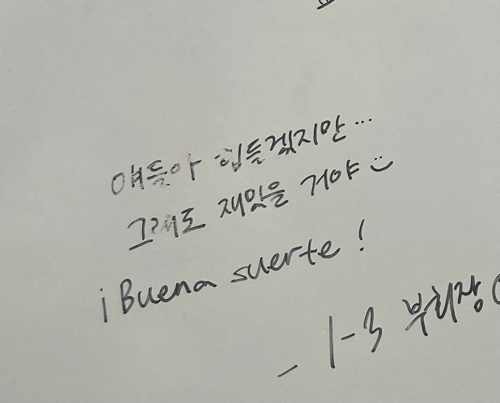한참 후 교실에 도착하니 가장 먼저 보인 것은 한 면을 빼곡하게 채운 선배들의 글씨였다. 읽다가 실실 웃음이 새어 나왔다.