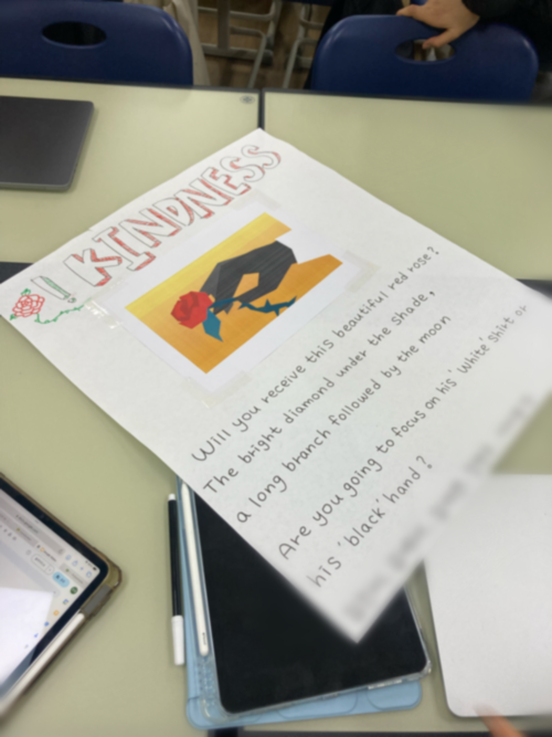 영어캠프는 단어 시험, 수업, 클럽 활동으로 이루어져 있었다. 미래의 국제고생, 부디 영어캠프에 스트레스받지 마시길. 수업은 원어민 선생님들이 차례로 들어오셔서 경제, 문학, 영화처럼 다양한 분야를 아주 기초적으로 설명해 주신다. 개념 대신 활동 위주였다. 영어로 시를 써보는 활동은 그나마 흥미로웠다. 책상이 교탁을 향했던 중학교와 달리 마주 보고 앉아 쉴 새 없이 떠드는 조별 활동의 연속이었다.
