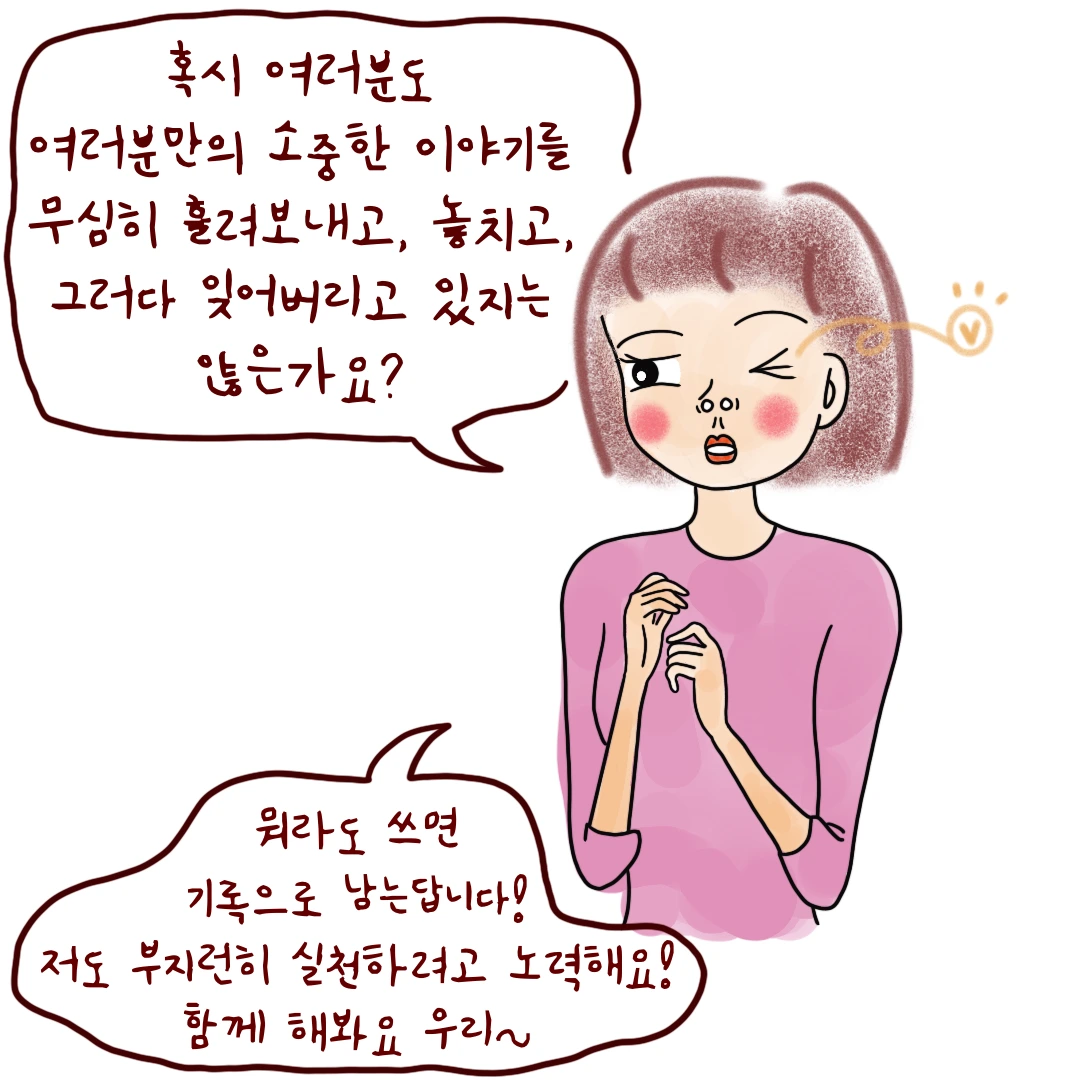 라고 그림 그렸지만, 저도 요 며칠 브런치북 만든다고 그동안 썼던 글 수정만 했지 새로운 글은 하나도 못 썼네요....^^ㅋㅋㅋ 여러분의 글로 저에게 자극을 주셔요!!!!!