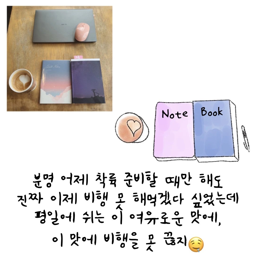 평일에 쉬는 이 여유로운 맛에, 이 맛에 비행을 못 끊지.