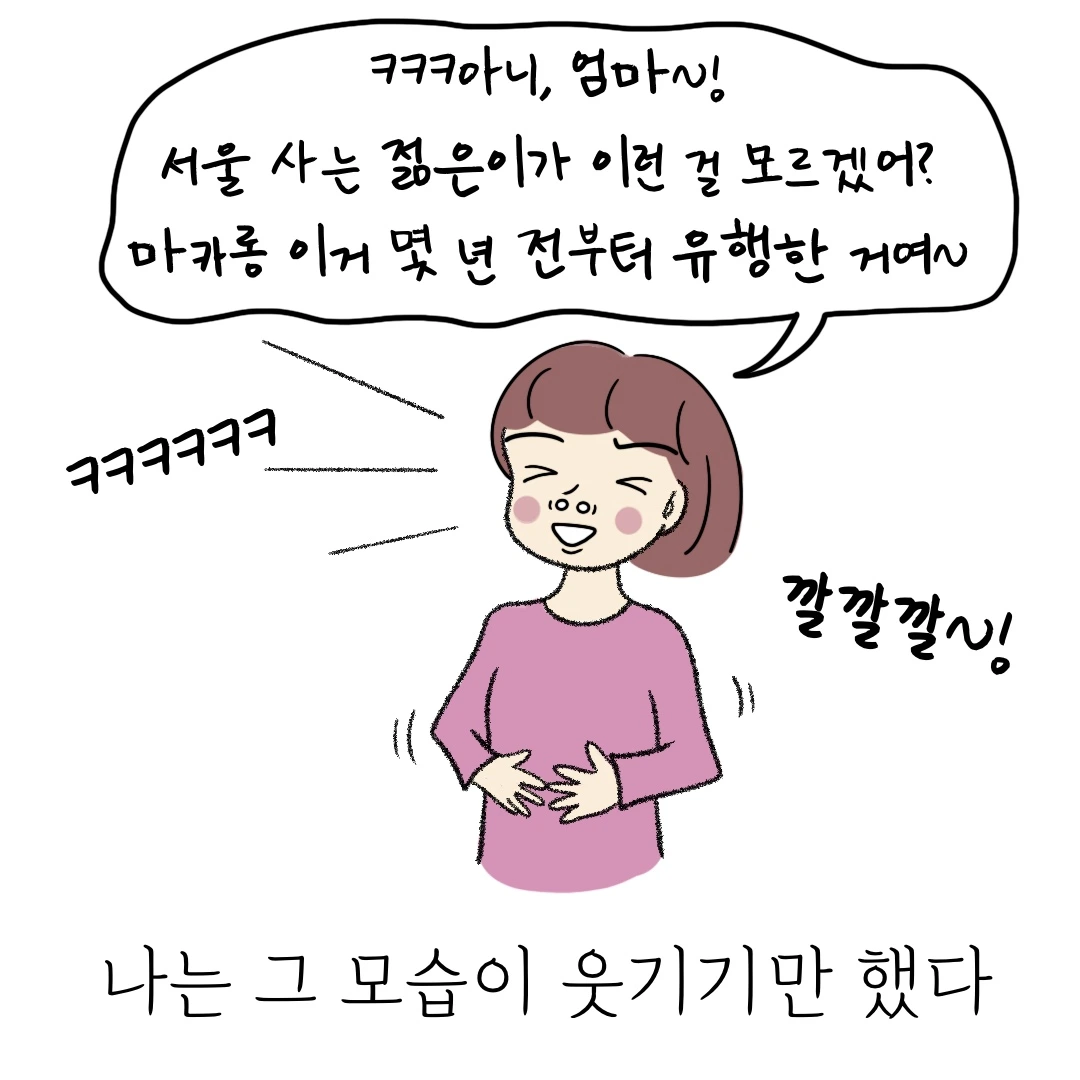 엄마가 모르는 디저트는 마카롱 말고도 많이 있겠죠? 알고서도 안 먹는 거랑 아예 모르고 사는 거랑은 또 다른데 말이에요. 형부도 마카롱을 사다 주는데, 딸인 저는 이번에 빈손으로 엄마를 보러 다녀왔네요. 다음번 시골에 내려갈 때는 제가 좋아하는 티라미슈를 사갈까 합니다. 엄마도 커피에 함께 먹으면 좋아할 것 같아서요! 독자님들은 부모님에게 어떤 디저트를 선물해 주셨을까요. 역시 호두파이가 짱이려나...