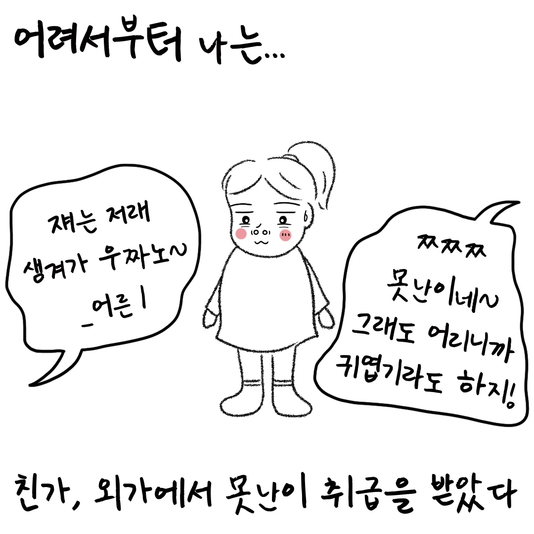 33살이 된 지금, 저의 20대를 돌아보며 그때의 저를 다독이고 싶은 마음과 함께, 혹시 저처럼 외모 때문에 좌절하고 있을 어린 친구들을 위해 이 만화를 그리게 되었어요. 저는 지금 각종 외모강박으로부터 많이 벗어난 상태이니까요. 그러니, 너무 염려하지 않으셔도 됩니다:)♡ 앞으로 이어지는 이야기도 기대하고 기다려 주세요!
