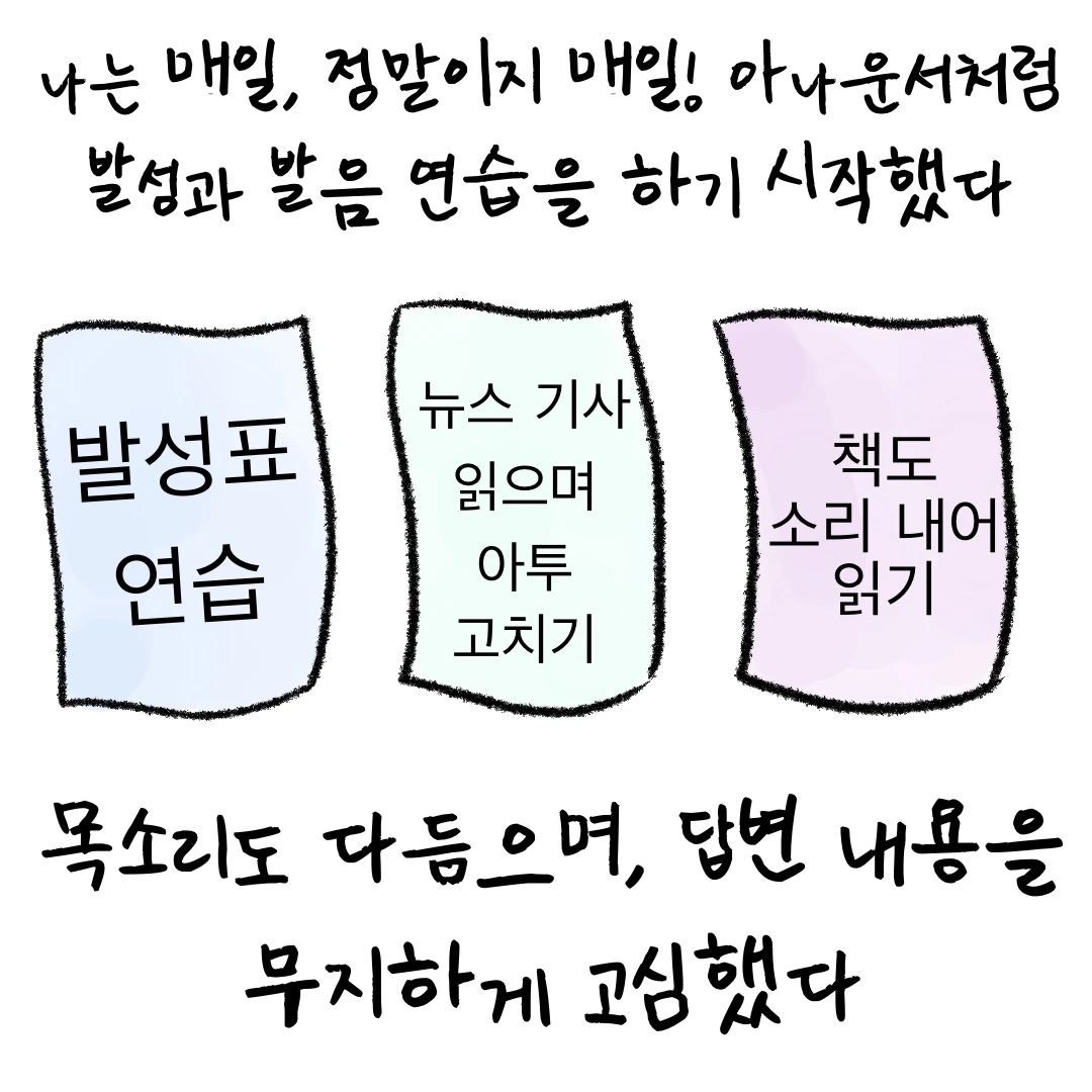 발성표는 네이버에만 치셔도 가갸거겨고교구규 같은 발성 연습하기 좋은 자료가 많이 있어요. 저는 아투(어린 아이 같이 어미를 끄는 말투)가 워낙 심했어서 아투를 고치려고 매일 아침마다 뉴스 기사나 책을 읽으면서 어미를 짧게 끊어 읽는 연습을 했어요! 요즘엔 유튜브에서 살펴보아도 스피치 연습하기 좋은 영상이 많이 있더라고요. 말하는 방식은 하루아침에 고치는 게 어렵잖아요? 어느 정도 기간을 길게 잡고서 혼자서 꾸준히 연습해보는 시간을 가지시면 좋을 것 같아요. 저는 대학 3학년 겨울방학 때부터 승무원을 준비해서 졸업하기 전에 합격한 케이스인데요! 이 시기에 발성, 발음 연습을 엄청 많이 했더니... 졸업 논문 발표하는데 친구들도 저의 새로운 말투에 놀라고 엄청 놀렸어요^^;... 근데 언제부턴가 무슨 발표만 하는 자리에 나가면 발표용, 면접용 말투+목소리가 나오더라고요. 아투 고치는 게 진짜 제일 어려웠는데ㅠㅠㅠ 평소에 무엇을 읽든 어미를 끊어서 소리 내어 읽어보는 방법!! 진짜 추천드립니다.