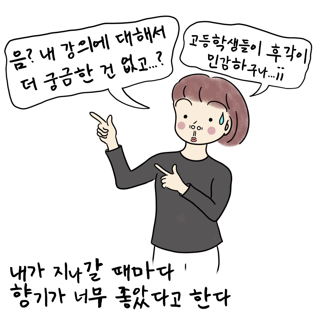 열강 이후 쏟아지는 질문들이 향수여서 조금 맥이 빠지긴 했지만^^;ㅋㅋㅋ 이틀 동안 학생들과 즐거운 만남을 가지고 돌아와 뿌듯했답니다!