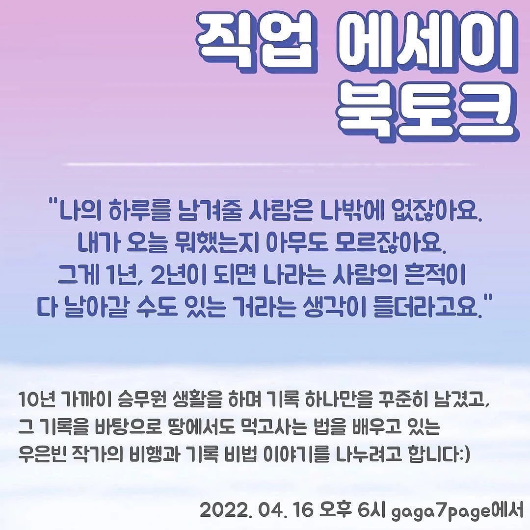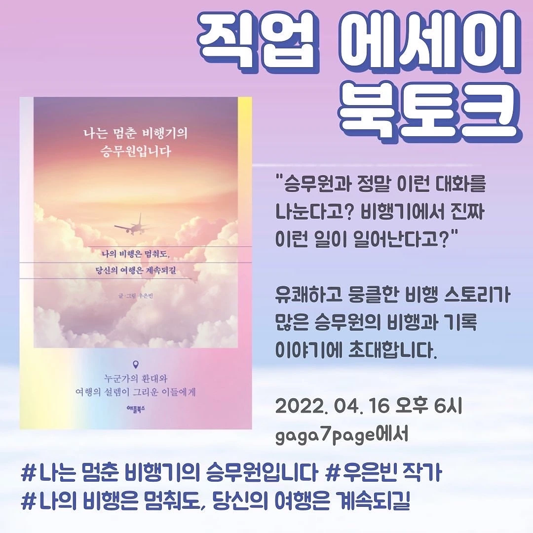 비단 저의 책 이야기만 나누는 것이 아니라 승무원이란 직업을 가지고 어떻게 기록을 하고 책을 쓰게 되었는지 그 비법을 공유하고자 합니다. 글쓰기, 직업 에세이에 관심 있으신 분들 놀러 오세요...♡