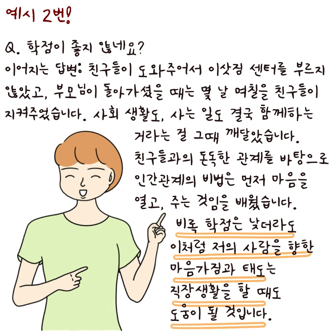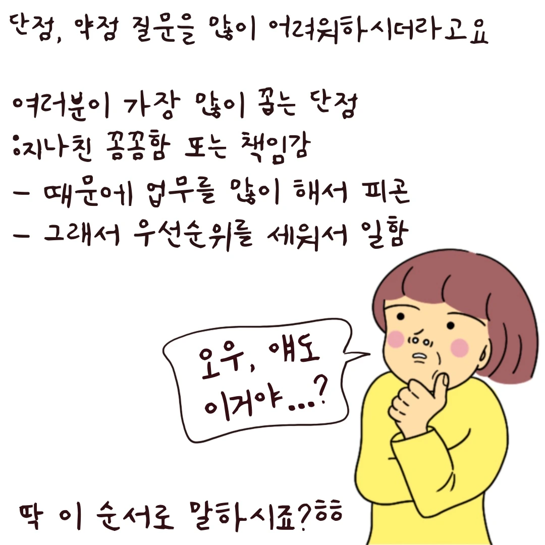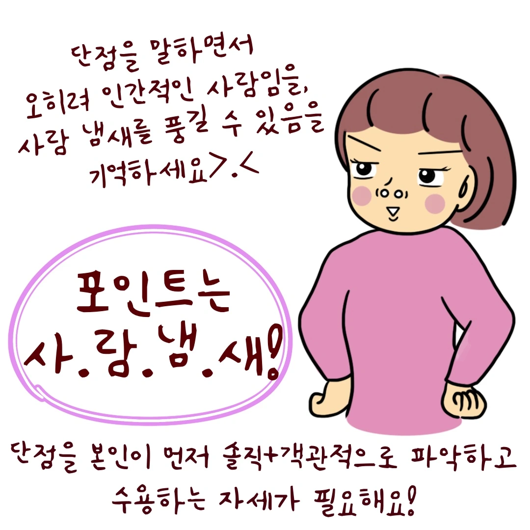 오히려 단점 말하기는 사람 냄새를 풍길 수 있는 기회입니다!!!