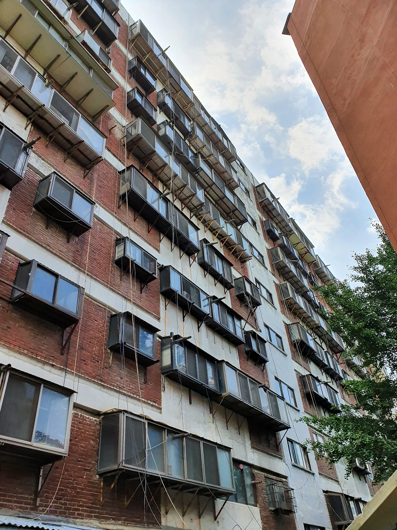 회현 시민아파트는 거대했다. 아파트 크기가 엄청났다. 지대가 낮아 눈높이에서 보이는 건물이 절반이었는데도 그 반으로도 충분히 컸다. 지어진 시기를 생각하면 이렇게 높은 언덕에 이런 거대한 구조물이 생겼나 싶다. 겉은 무한도전에서 보았던 것처럼 많이 낡아 있었다. 시멘트는 세월의 흔적이 묻어 얼룩덜룩하였고 지금 아파트에는 볼 수 없는 철제 구조물은 위태로워 보였다. 중간중간 창문 유리가 깨지거나 아예 없어 안의 쓰레기들이 훤히 보이기도 하였다. 십 년 전 홍콩에서 보았던 청킹맨션이 생각났다. 그나마 아직 거주하고 있는 사람이 있어서인지 띄엄띄엄 눈에 확 띄는 흰 판이 있었다.