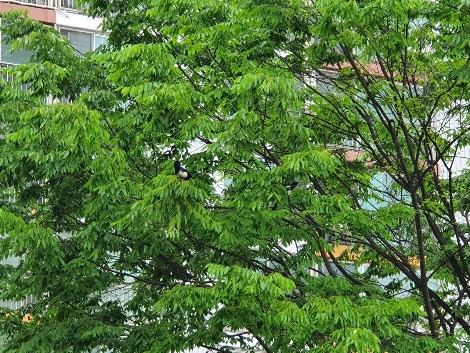 며칠 뒤 집을 나서면서 그 자리를 보았다. 까치는 없었다. 어디로 갔는지는 모르겠지만 '그때 묻어줄껄' 하는 생각도 잠깐 들었다. 하늘이 좋아 위를 쳐다보는데 아파트 앞 나무 위에 까치 두 마리가 있었다.