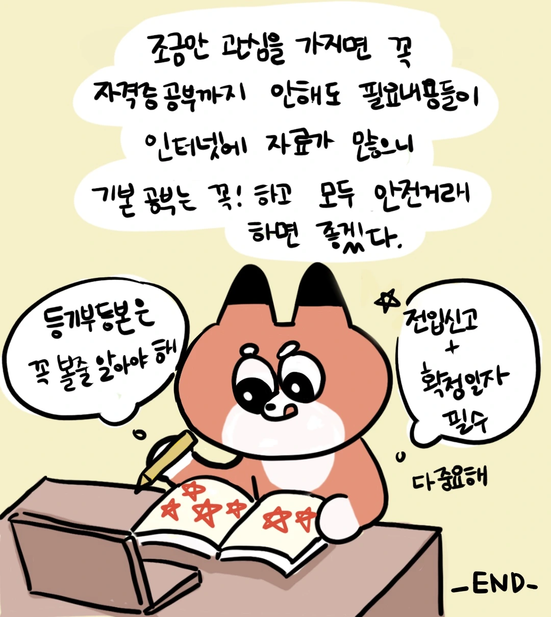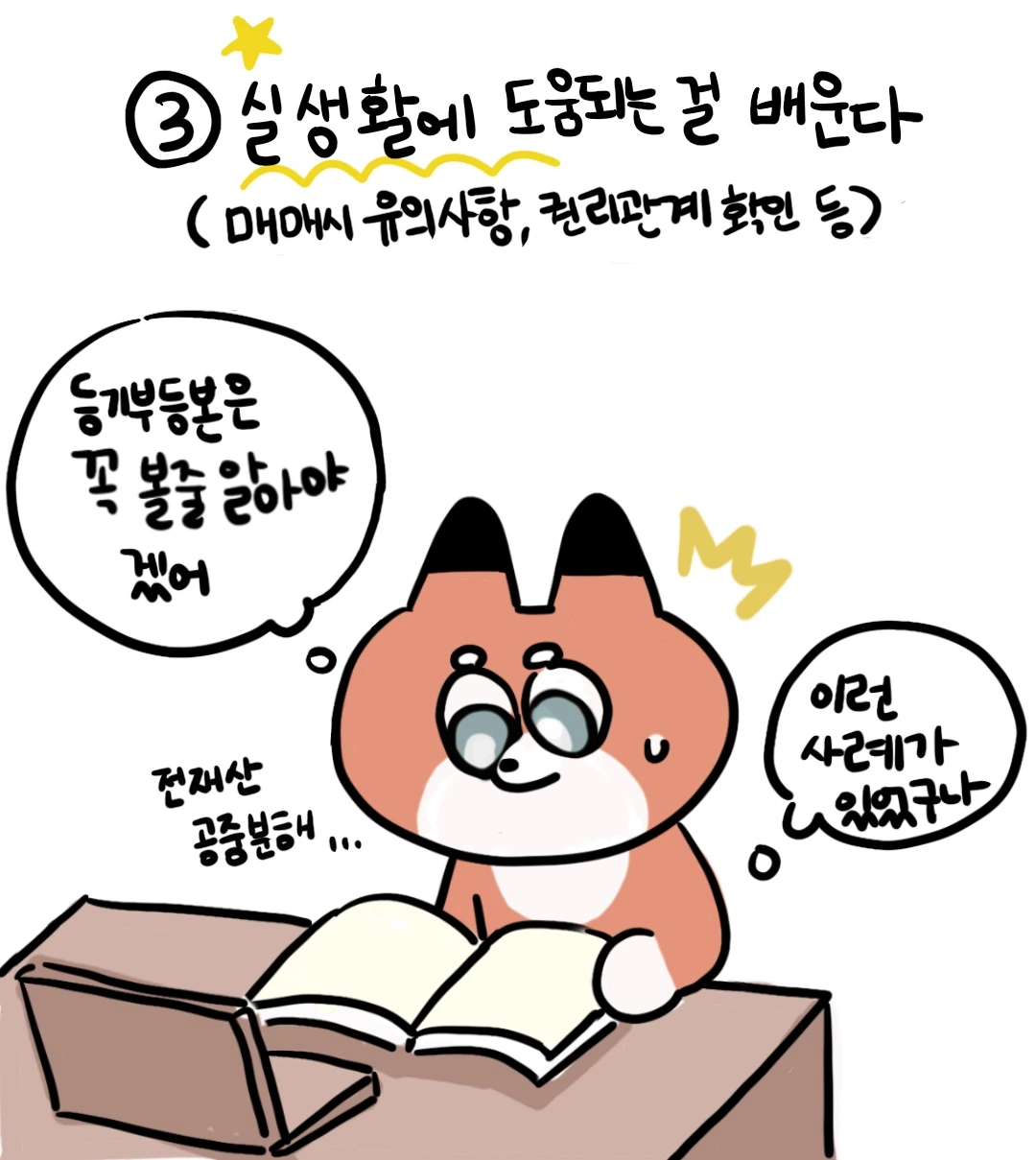 처음 월세 계약했을 때, 전세계약했을 때가 떠오르더라고요. 시간이 지나서 이해하는 말들이 많네요. 공부하면서 이렇게 또 미숙함을 조금씩 채우고 있습니다 :)