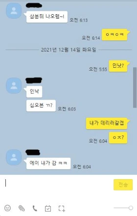 그래도 불참비가 1만 원이다. 안 갈 수가 없다. 혹시나 6시가 되어서도 연락이 안 되면 전화보다는 카톡을 한 번 넣어본다. 혹시나 자고 있는데 전화하면 깰 수도 있으니까 말이다.. (비겁)