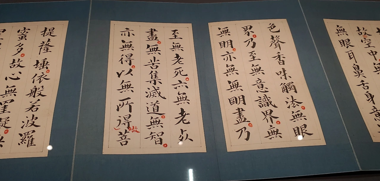 전시관 마지막즈음에 추사 김정희의 유품과 반야심경 글씨가 있었는데 학생때 불교학생회 출신인 나로선 추사의 반야심경을 읽어보고 F(Fail) 낙제점을 줄수밖에 없었다. 겉으로 화려하고 속으로 공허한 현대 도시문명처럼 글씨체는 수려하나 몇군데 오자나 탈자가 있고 '고'자 처럼 빨간글씨로 빼먹은걸 슬쩍 옆에다 써놓은것도 있지만 빼먹고도 아예 오리발내밀듯 아무표시없이 넘어간것도 있고.. 이래서는 우리 불교학생회때였다면 지도법사 스님께 통과못하고 나머지반에 남아서 다 외우고 집에가야하는 나머지반 수준인 것이다. 아무튼 그래도 흠결있는 문화재지만 글씨가 수려해서 보기는 참 좋았다.