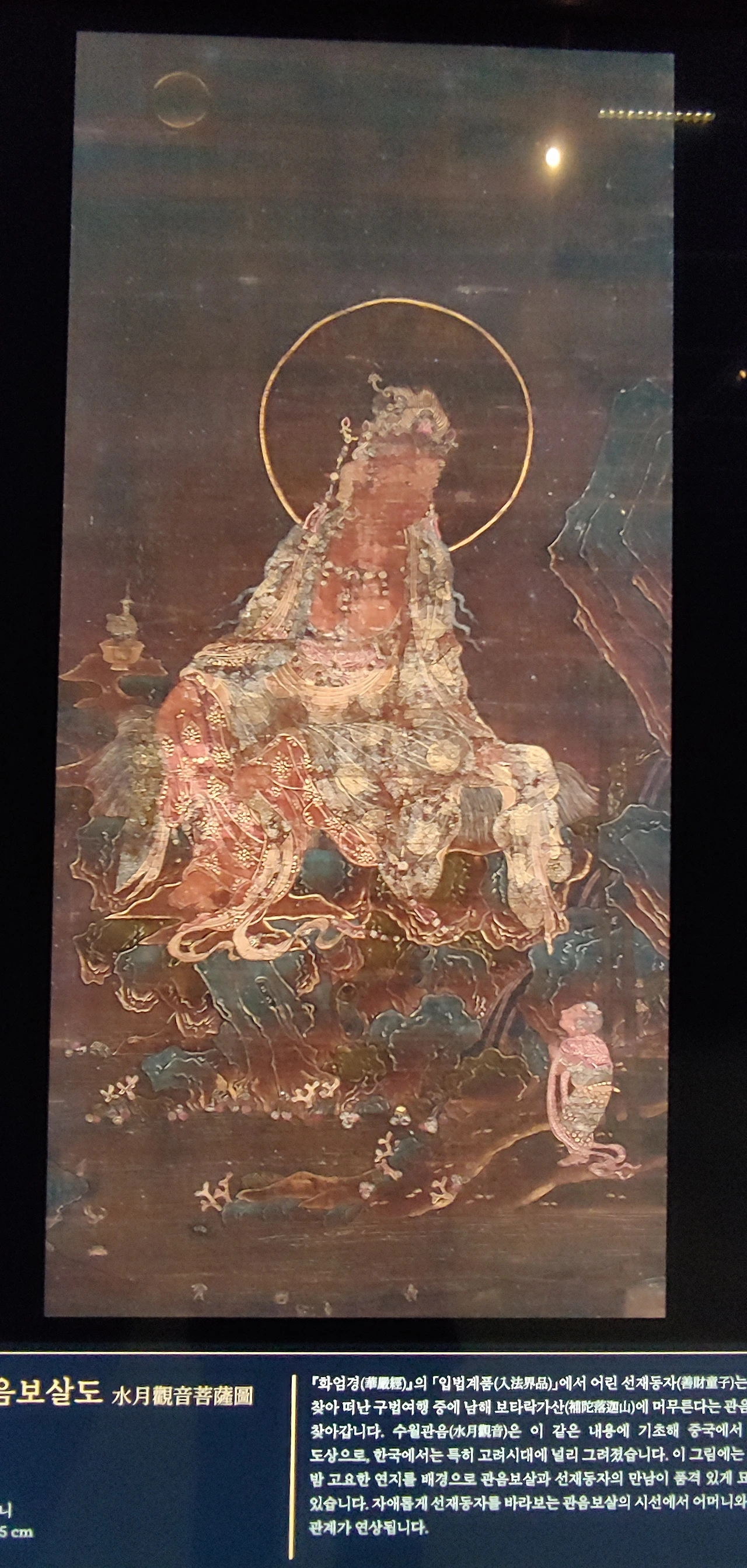 (*그러고보니 제목이 진흙속에서 피는 연꽃이니 연꽃처럼 아름다운 고려불화와 백제불상이 연꽃이고 그외 일본불화나 중국불상 등은 진흙역할로 일부러 배치해둔것일지도 모르겠다) 호암미술관이 소장한건 일부고 대부분 다른 국립중앙박물관이나 다른사찰 성보박물관이나 외국박물관에서 빌려서 전시하는 작품들이었다. 임진왜란이나 일제강점기등 일제침략기때 외국으로 유출된 작품들이 임시로 다시 돌아온 것이다.