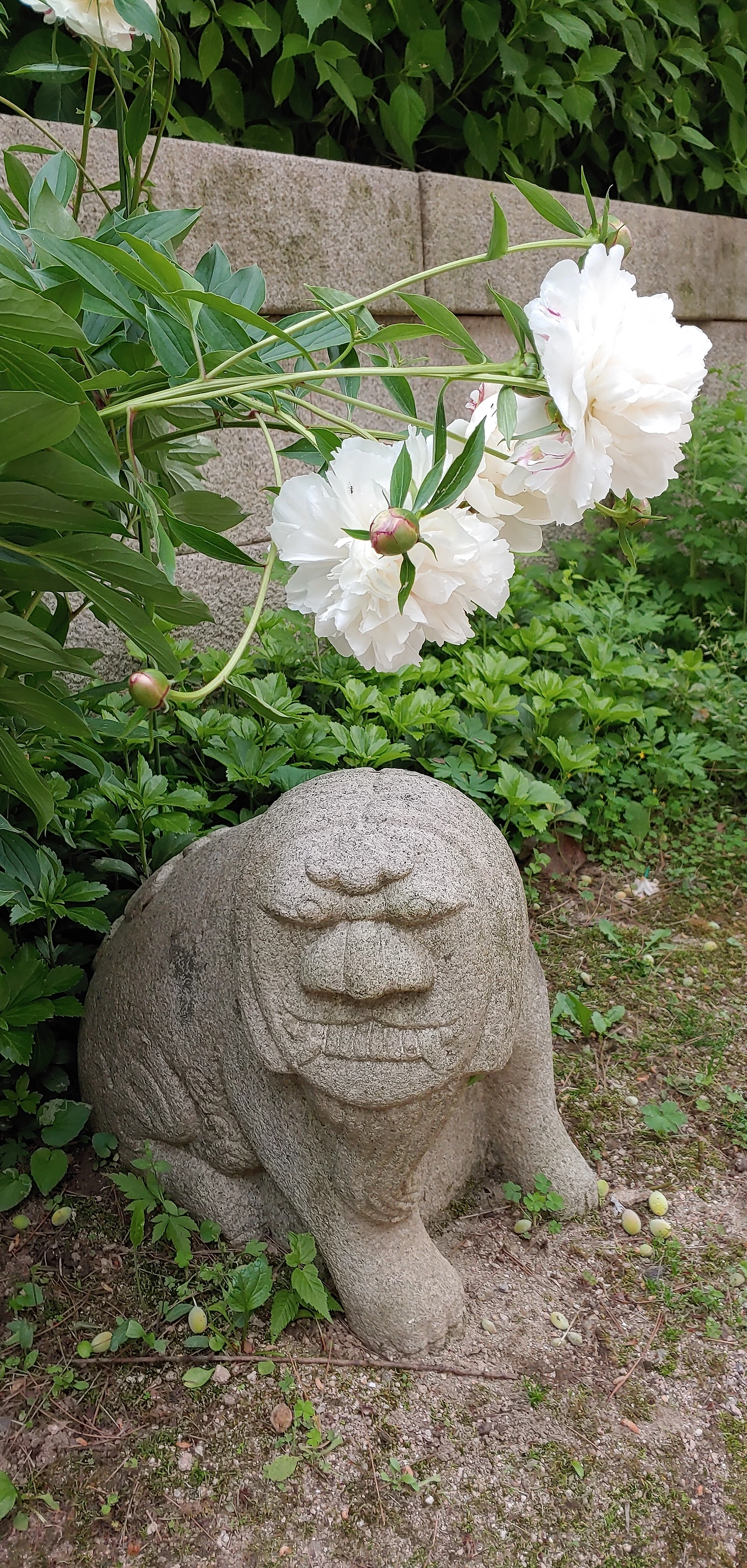 호암미술관 주변경관들도 아름다웠다. 한국의 아름다운 정원 10곳에 들어가도 손색이 없을정도로 기품있는 문화재급 석물들을 곳곳에 전시해놓고 조경도 상당히 수준급이었다. 그러나 이십대때부터 풍찬노숙을 해오며 수려한 산수경관을 접한 내 기준에서 볼때 상당히 수준있는 조경이었음에도 처음엔 학점으로치면 B+정도 주면되겠다 싶었다. 비가 오려고 바람이 부니 앞의 작은 호수에서 물결이 일고 정원에 물이 흐르게해놓고 수양버들 가지가 늘어지게 해놓았으며 이른봄에 왔으면 예뻤을 매화나무를 곳곳에 심어놓은데다 과연 재벌가의 미술관답게 문화재급 불상과 석물들을 곳곳에 전시해놓고 그외에도 작약, 연꽃, 수국, 라일락, 단풍나무, 아름드리 소나무, 오래된 노간주나무?(추정), 구상나무, 하나에 수천만원씩은 할 돌들(수석) 여러개 등 멋지고 아름답고 수준있는 정원마당이었지만 비가오려는데 개구리 소리가 들리지 않았다. 뱀도 한마리도 못봤다. 연못엔 물고기가 없었다. 등등 그래서 B+정도면 되겠다 하고있는데 마지막 떠나올무렵 산비둘기들이 놀고있는걸 보아서 A-로 조정하고왔다.(개인적인 평점)국화와 대나무도 어느구간에 심어진걸 슬쩍 본것같다.