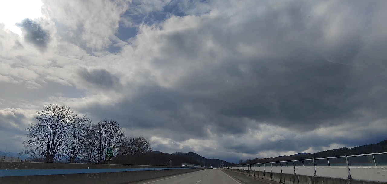 대충 여행짐을 챙겨서 운전을하는데 한적한 도로와 구름낀 날씨, 간간이 내리는 눈과 눈쌓인 멀리보이는 산들을보며 몇년전 여행했던 미국의 풍경이 떠올랐다.