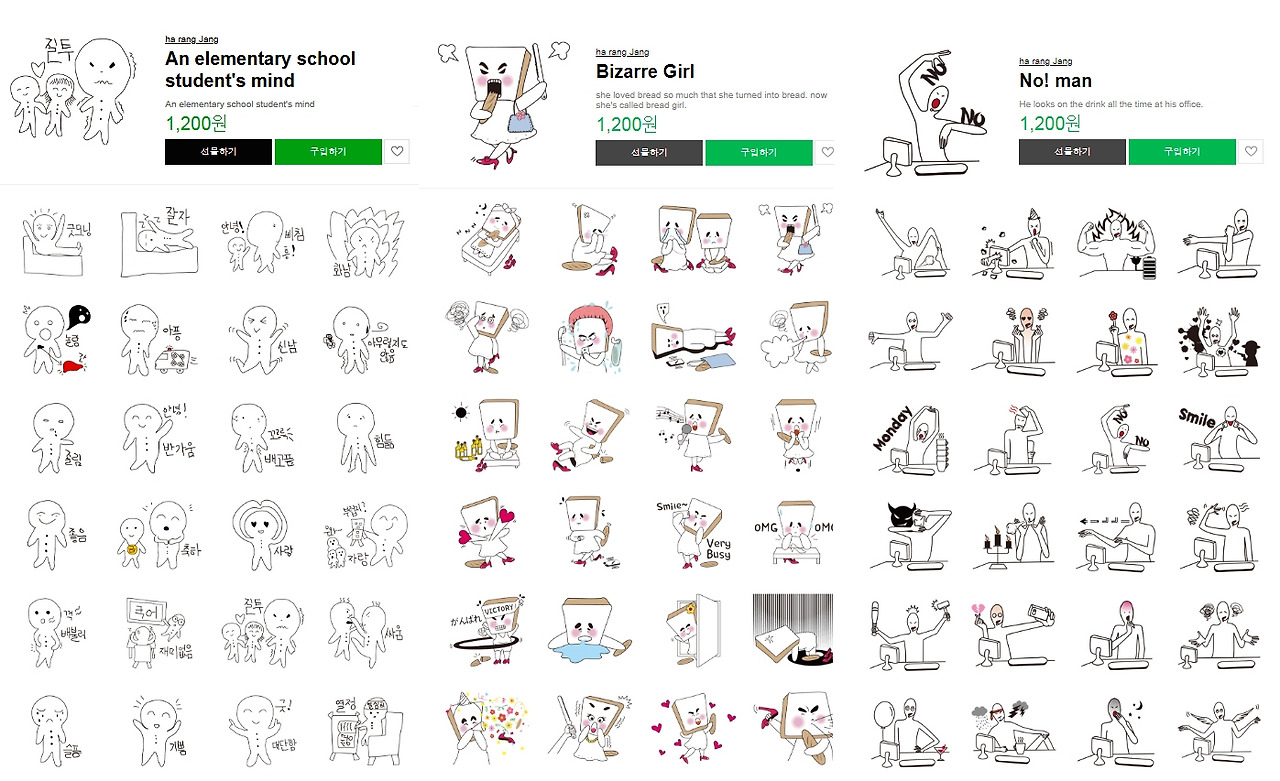 책이 출간되고 여유가 생기면 이모티콘 그리는 일에 몰두했습니다. 책 쓸 때와 비슷한 패턴의 일상을 이어갔어요. 아이들이 잠들면 그림을 그리고, 주말에 가족들이 교회에 가면 다시 그림 그리는 생활을 반복했습니다. 실력이 부족해 카카오톡에는 출시하지 못했지만, 네이버 라인에 틈틈이 6종의 이모티콘을 출시했어요. 물론 이모티콘 그리는 일도 저에게는 즐거운 취미 생활입니다.