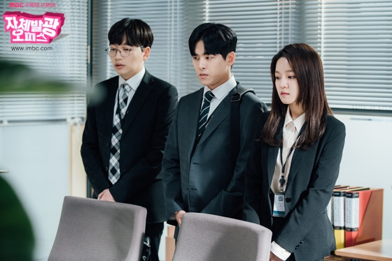 <드라마 '자체발광 오피스'에서 3개월 계약직 사원 3명의 모습_출처: TVING>