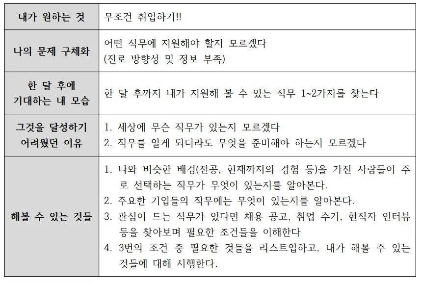 “한 달 후까지 명확하게 내가 지원해 볼 수 있는 직무 1~2가지를 찾는다”