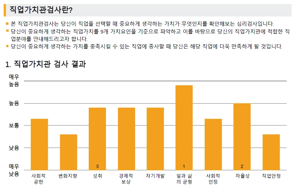 ‘직업 가치에서 나의 우선순위는 무엇인가’이다.
