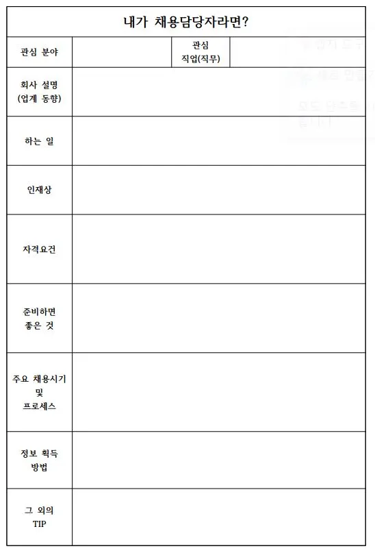 지금까지 수집한 정보들을 종합하여, 내가 만약 해당 기업의 인사담당자라면 어떤 사람을 뽑고 싶을지를 정리해보는 것을 추천한다.
