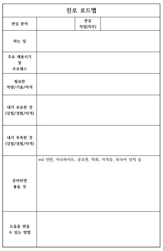 실제 활동지에 빈칸들을 채워보며, 당신만의 진로를 찾고 그 길을 향해 씩씩하게 나아가기를 바란다.