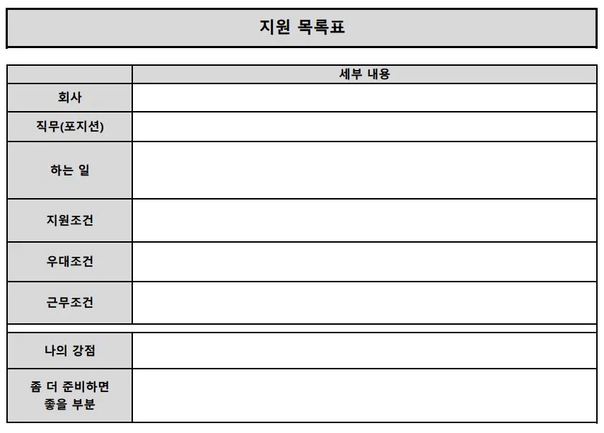 이 작업은 내가 앞으로 준비해야 할 것들을 정리하고, 중요한 채용 프로세스에 맞추어 언제까지 어떤 조건들을 준비할 수 있는지를 정리하는 작업이다.