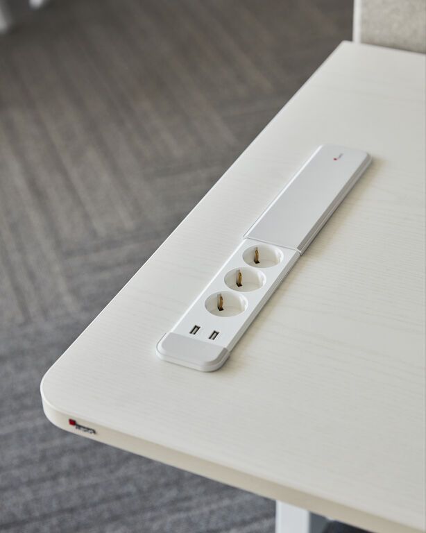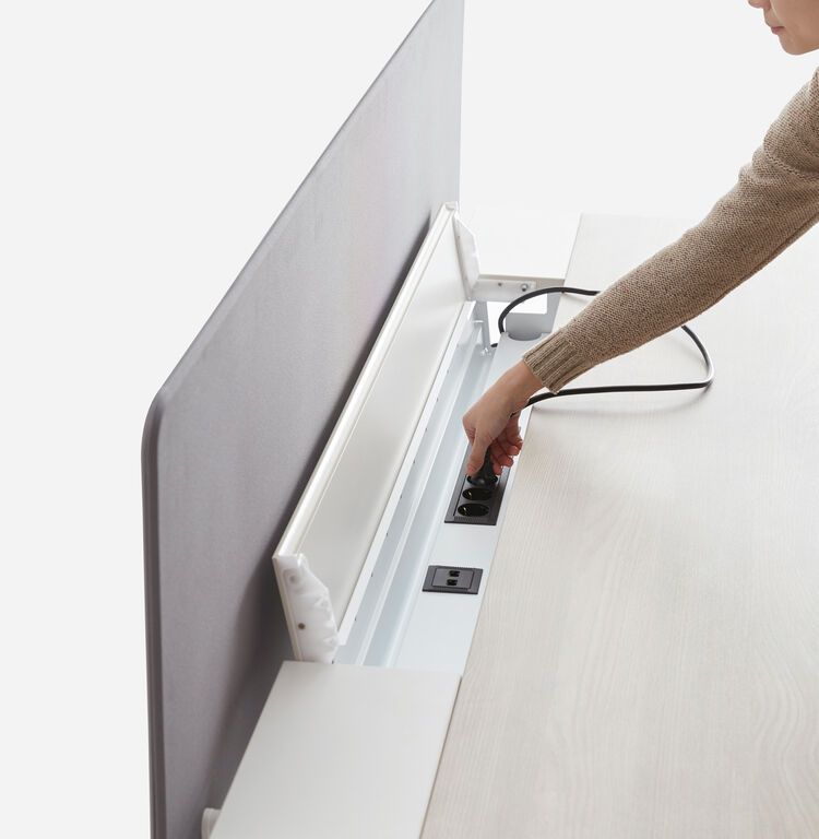 네. 욕심이 많아서 계속 만든 거 같아요. 더 좋은 걸 보여주고 싶고, 기왕 하는 김에 기존 제품의 아쉬운 점도 개선하는 거죠. 예를 들어 저희 제품 중 인에이블이란 시리즈가 있는데, 이 제품을 처음 만들 때는 자율좌석제를 깊게 고려하지 않고 개발했어요. 그런데 인에이블 데스크를 본사에 배치하려고 보니까 콘센트가 모니터 뒤쪽에 있는 게 불편해 보이더라고요. "자율좌석제는 노트북을 쓰고 매일 콘센트를 새로 끼워야 해. 그러면 콘센트는 어디에 있는 게 좋을까?" 그 결과 콘센트를 손이 잘 닿는 좌측 상판에 매입했어요. 납득이 되는 스토리죠?