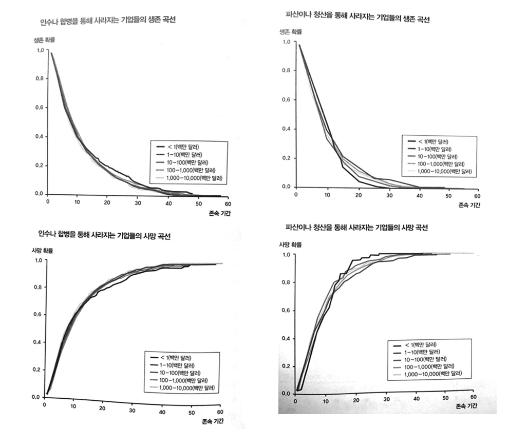 [그림] 인수/합병, 파산/청산 유형에 관계없이 기업의 생존, 성장 곡선의 궤적은 매우 유사하다.[xi]
