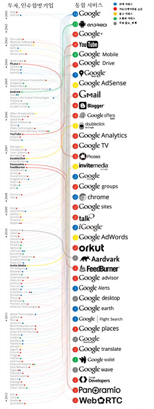 , 최신 업데이트 현황 및 관련 기업의 대쉬보드를 보고 싶다면 https://my.infocaptor.com/dash/mt.php?pa=google_acquisitions_560b29a00783e 참조