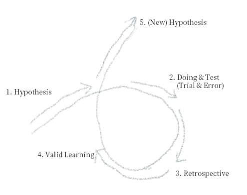 그런데 현실화를 위한 실험은 다시 구체적으로 어떤 속성을 가지는 걸까요 핵심은 실험으로부터 유효한 학습을 하는 것입니다. 반대로 가장 경계해야 할 것은 실험을 ‘그저 해보는’ 것 수준으로 여기고 그로부터 아무런 합리적인 근거를 얻지 못하는 경우입니다. 이는 다시 말해 실험에는 과학적 방법론과 인사이트가 가능한 반영되어야 한다는 것을 의미합니다.