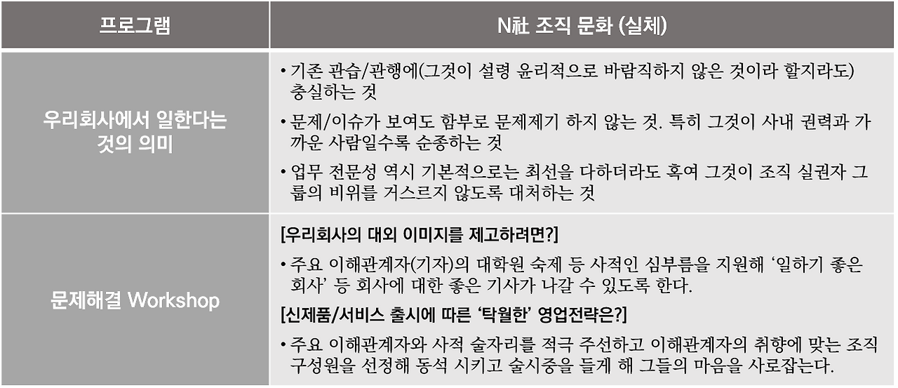 N社의 지원자였다면? 혹은 이미 입사해 위와 같은 교육을 받았다면, 무엇을 느꼈을까요?