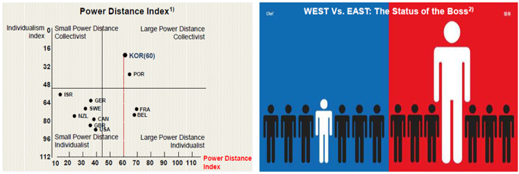 앞에서 언급한 [Power Distance, Indivisualism Index와 Infographic] 역시 이러한 우리 고유의 수직적/ 문화적 경향을 나타내는 근거입니다. 이로 인해 우리는 겉으로는 ‘수평적 관계를 지향하며, 자유롭게 의사소통’하자고 하면서도 하위 구성원은 ‘반론’을 이야기하는 것에 심리적인 부담을 느끼고, 상위 구성원은 ‘권위적이며’ 이에 반하는 언행들에 ‘감정적’ 으로 반응하고 마는 것입니다.