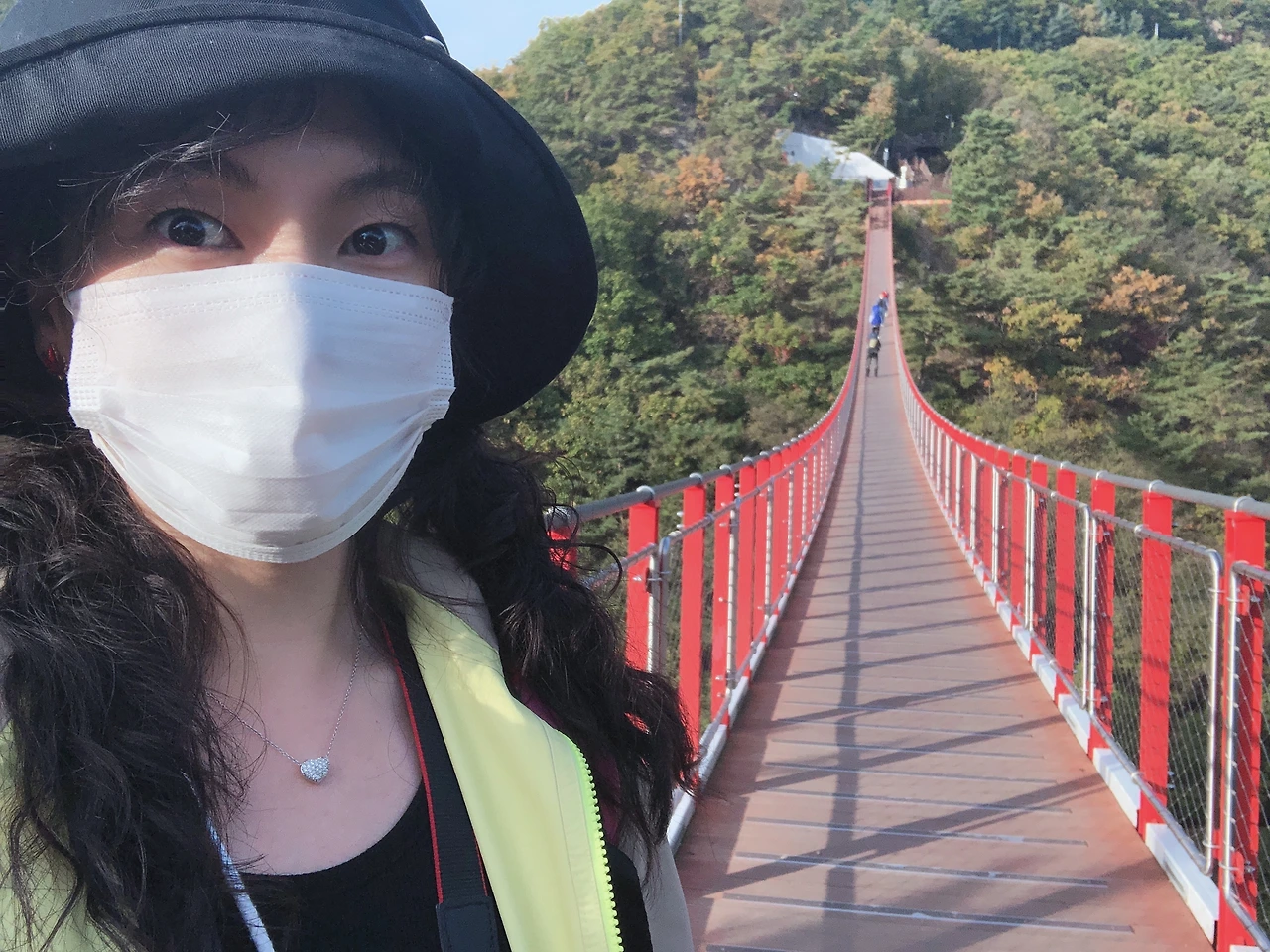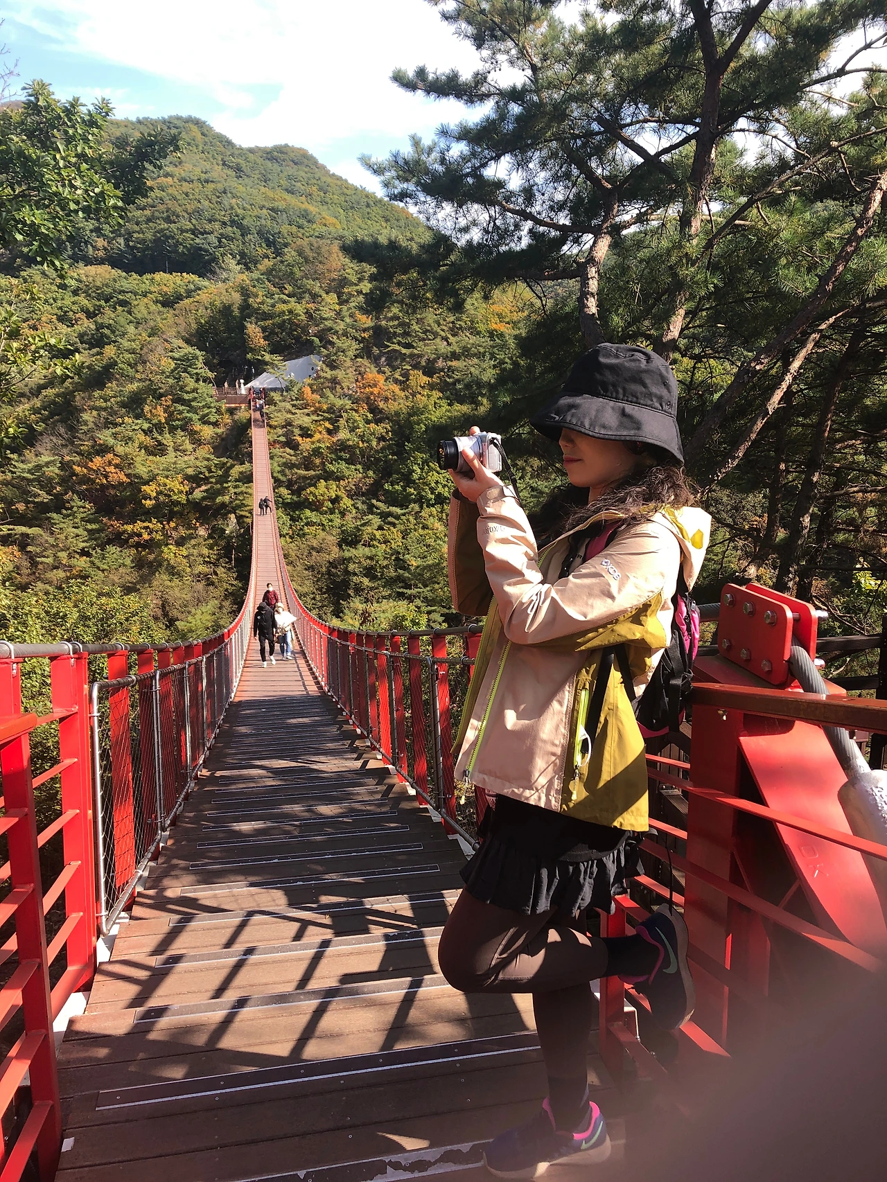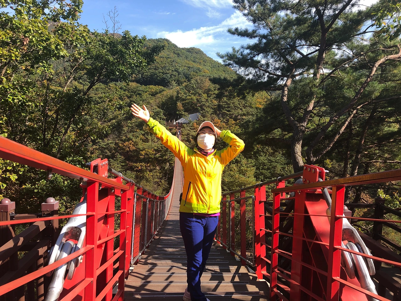 항상 가족들과 함께 오는 곳이기 때문에 강철 체력이 아닌 우리는 옷으로만 등산을 하고 살짝 오르는 둥 마는 둥 하고는 출렁다리와 주변 경치 감상에 더 열을 올린다.