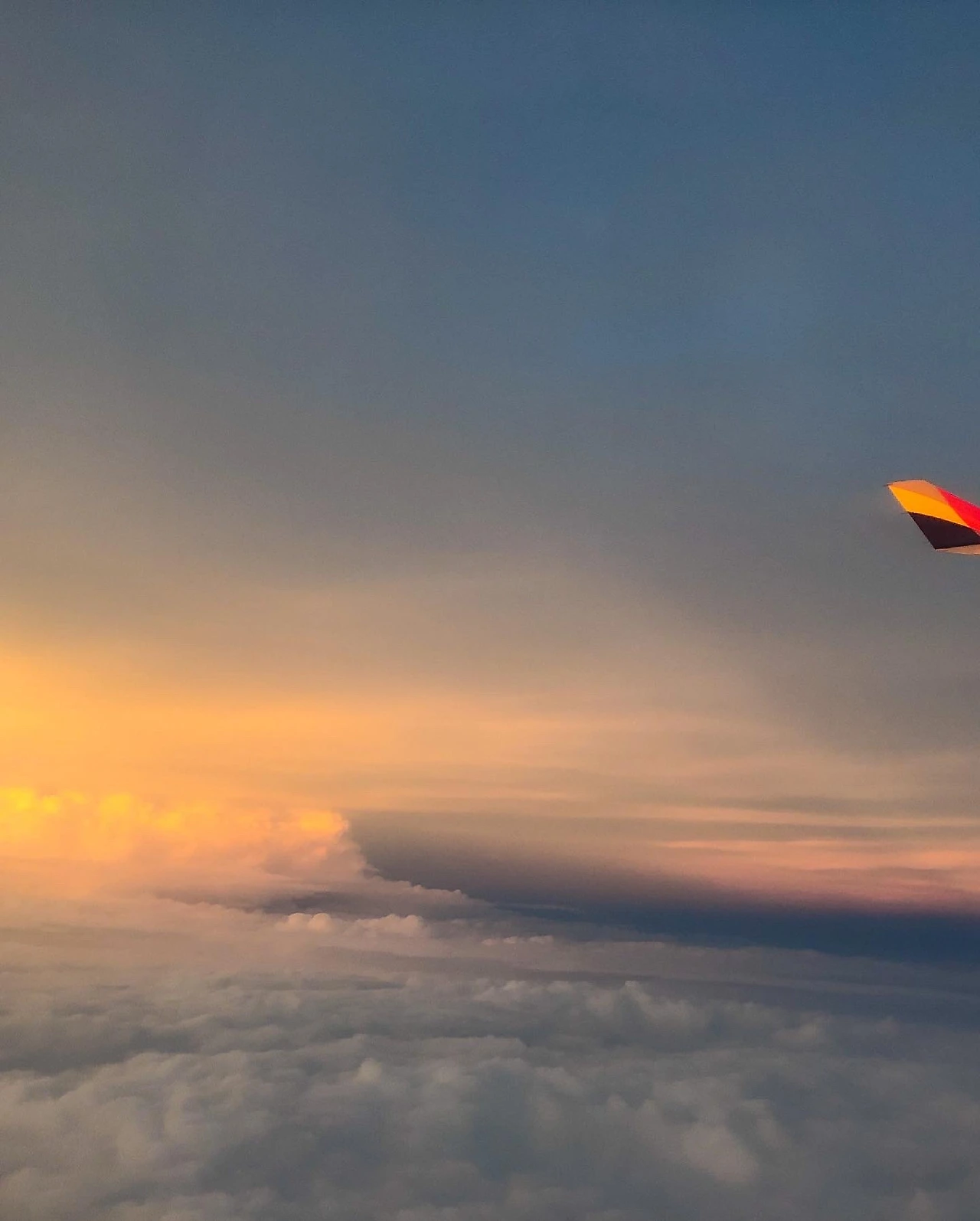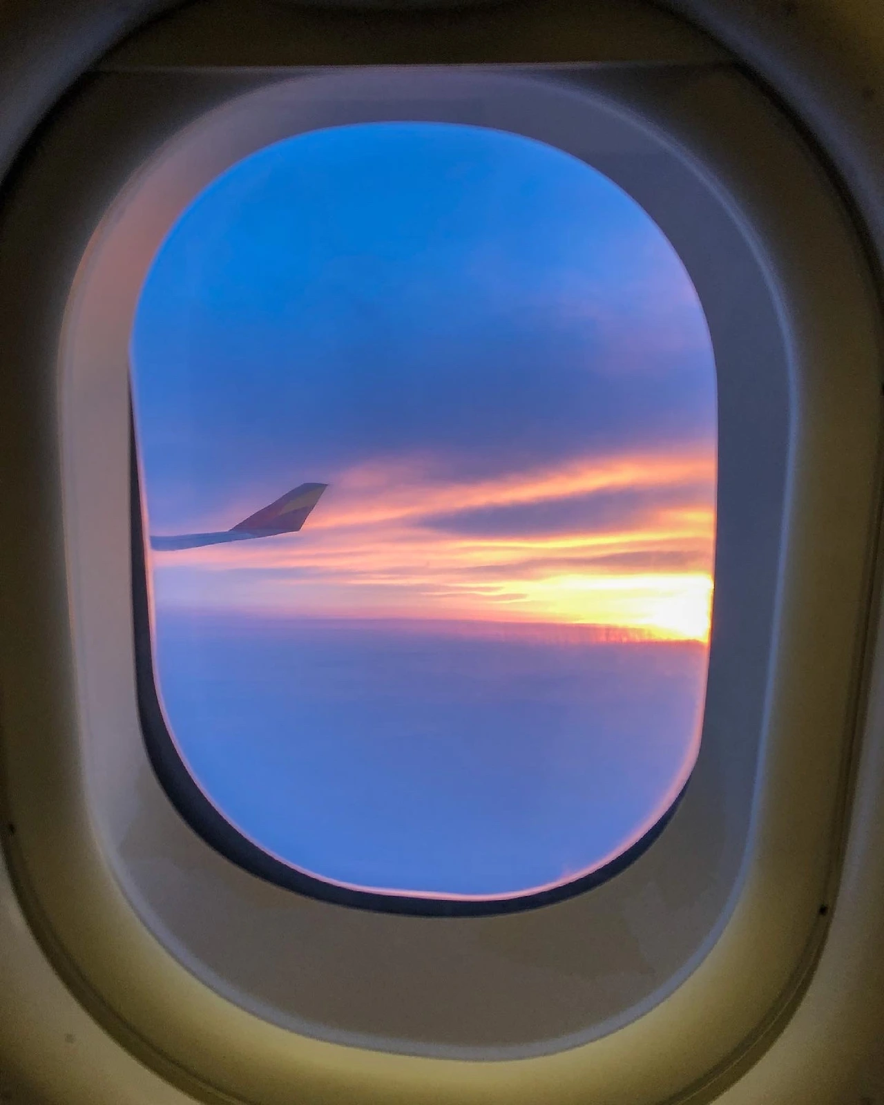 오늘 내가 선택한 자리는 비행기 꼬리 가장 뒤편 좌측 공간이었다. 늦은 오후 비행이라 일몰을 기대하며 자리에 앉았다. 많은 비행기들이 차례를 기다리느라 30분 정도 지연된 후 이윽고 내가 탄 비행기도 하늘로 이륙했다. 오랜만에 느껴보는 항공기의 질감에 참으려 해도 입가에 미소가 번졌다. 고도가 높아지자 비구름이 사라지고 맑은 하늘과 구름을 볼 수 있었다. 그리고 붉게 물들어 가는 일몰의 순간을 맞이하자 난 그만 울음이 터질 것 같았다. 내가 사랑하는 일몰을 하늘 위에서 바라보고 있자니 내가 얼마나 여행을 사랑하는지 깨달았다. 창문에 새겨진 노을은 염세적이었던 내 마음속도 따뜻하게 물들였다. 이런 것이 행복이다 싶었다.