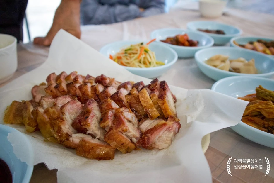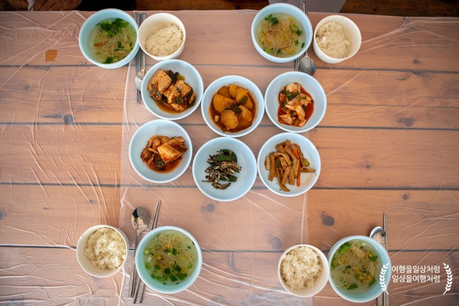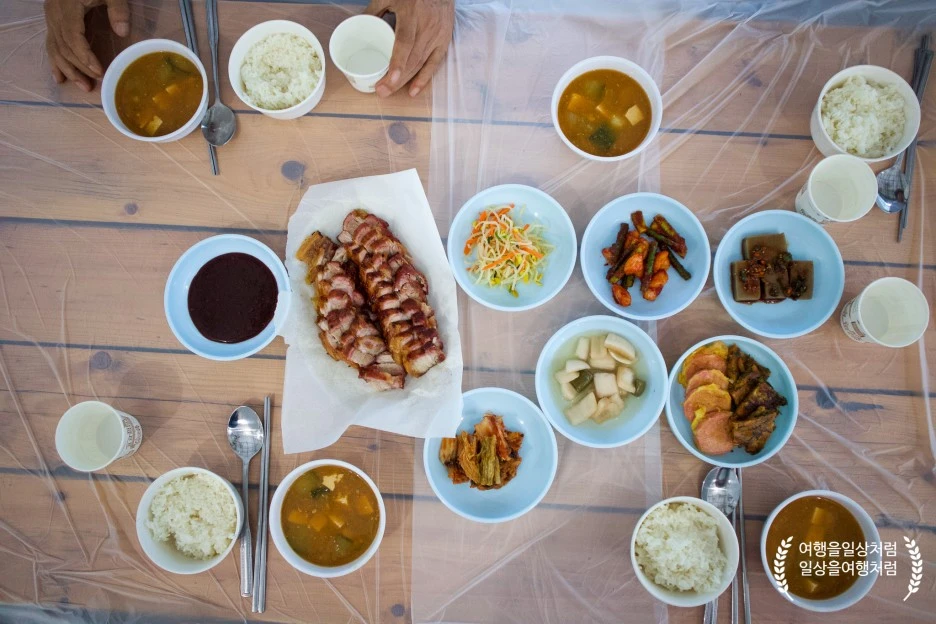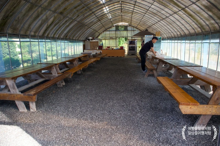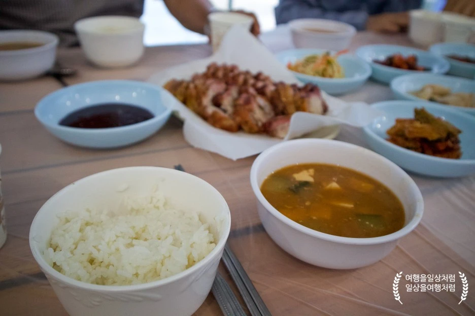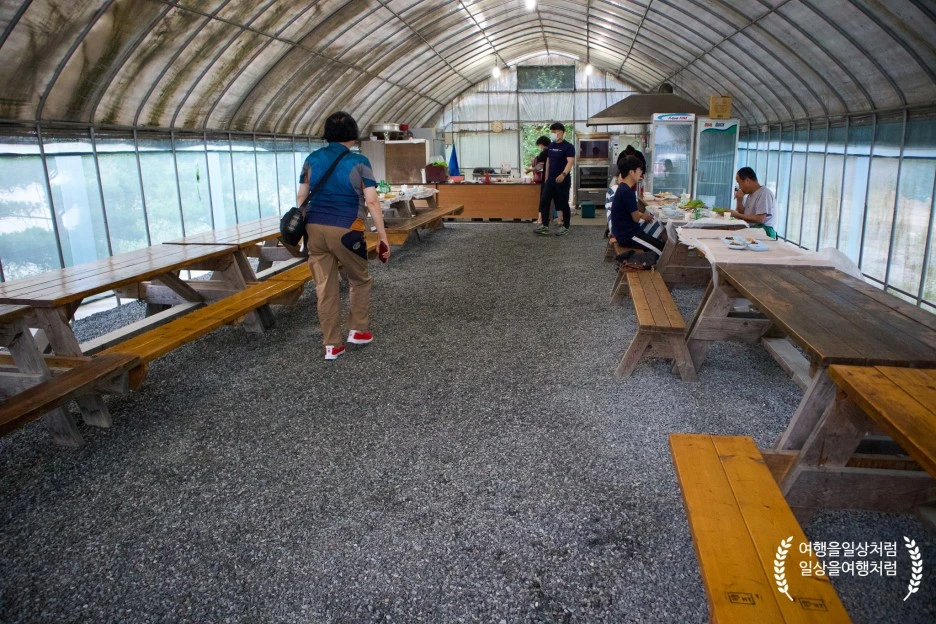 이제 막 어둑어둑 해지는 분위기라서 차에서 내려서 관리동에서 전화를 드리니 숙소 위치 안내해 주시고 바로 식사 장소로 안내해 주셨다. 예상대로 역시나 우리가 마지막 체크인과 마지막 저녁식사였다.ㅠㅠ