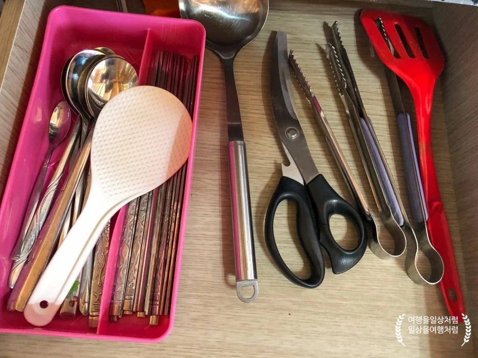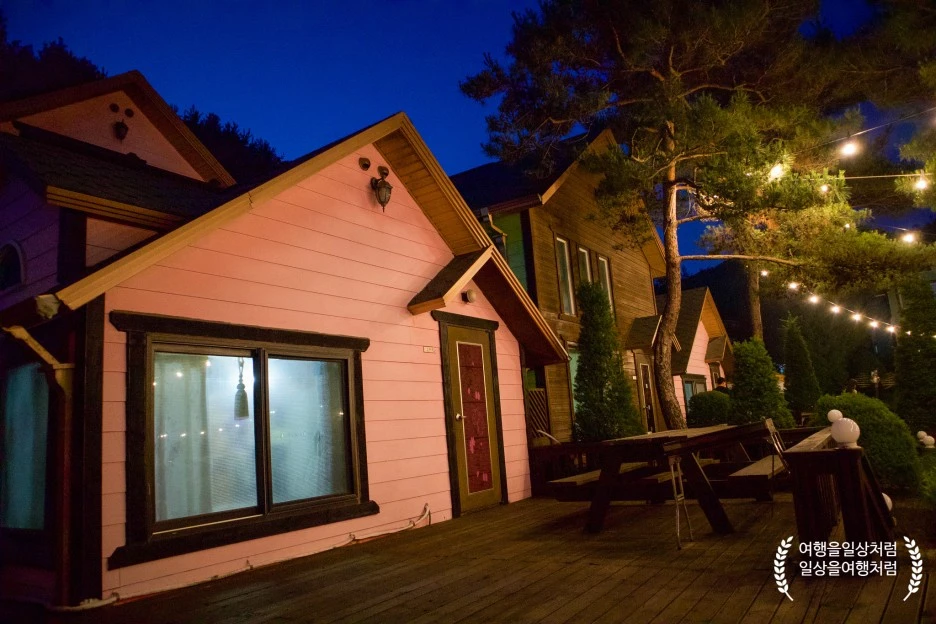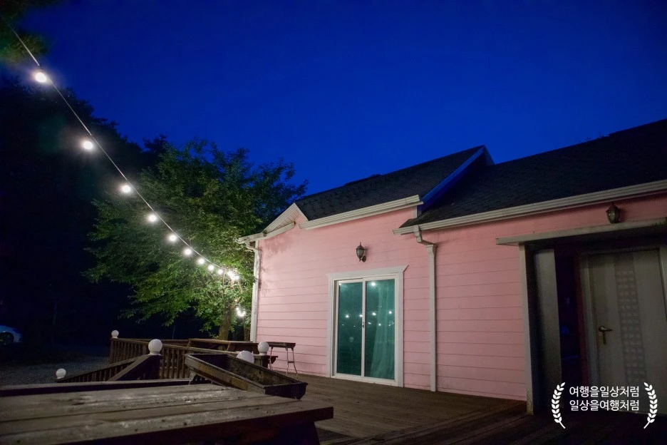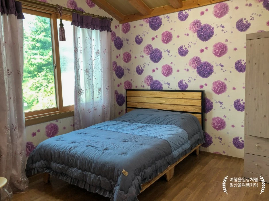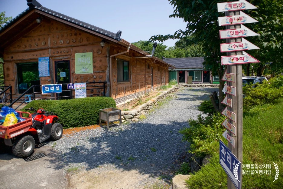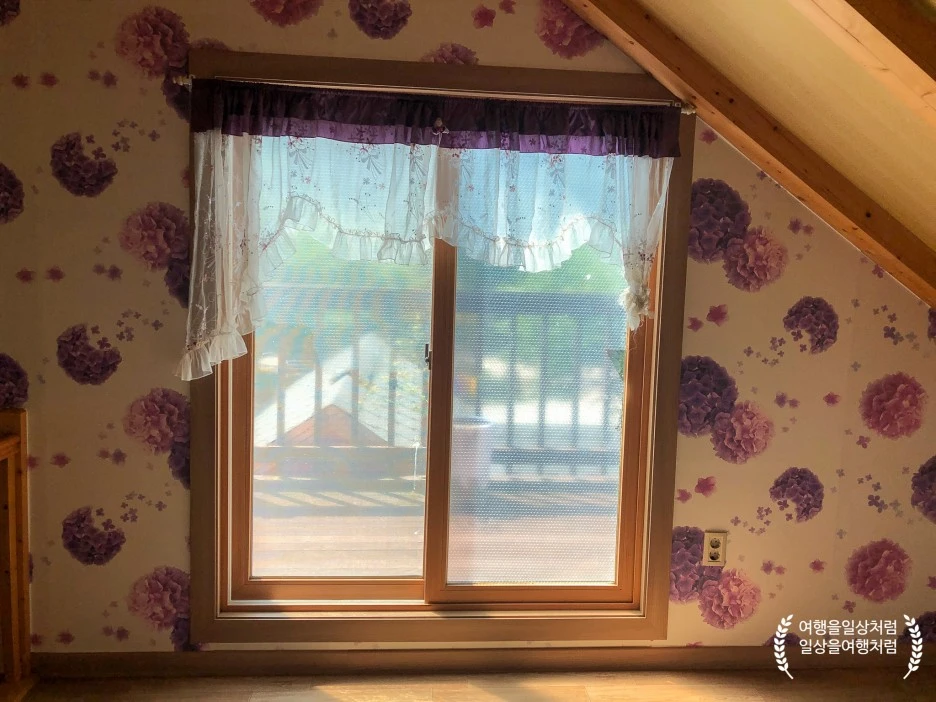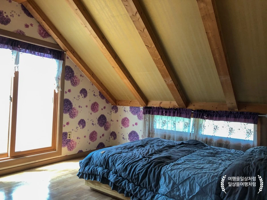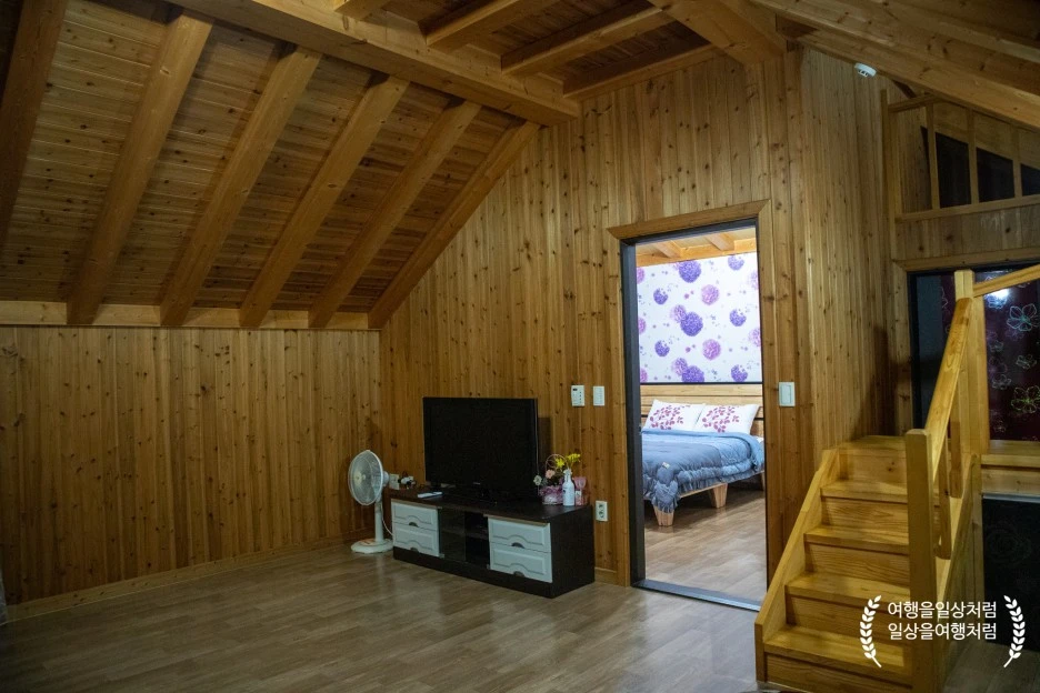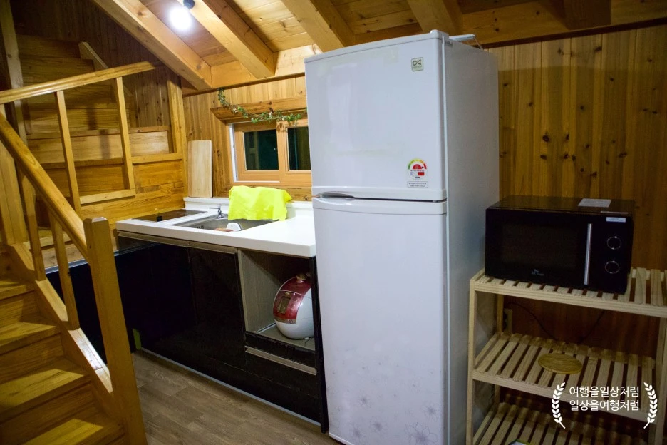 화장실은 1층에 있고, 주방에 간단한 식기와 주방도구(냄비, 프라이팬 등)와 밥솥, 전자레인지가 구비되어 있다. 패키지로 이용하지 않고 숙박만 하실 분들에게는 직접 밥을 해 먹어야 하니 중요한 정보일 수 있다. 객실 안에는 여름이면 극성을 부리는 모기와 파리를 퇴치할 홈 키파와 손 소독하는 것도 구비되어 있었다. 저녁을 먹었더니 왠지 모르게 나른해져서 와서 짐 풀고 거의 바로 씻고 잠들었다. 다음 날 ATV 액티비티가 준비되어 있기도 했고 말이다. 원래 낯선 곳에서 잠을 잘 못 이루시는 어머니가 여기서는 자연 속에 있어서 그런지 몰라도 불면증에 시달리지 않고 바로 주무셔서 내가 다 기분이 좋았다ㅎㅎㅎ 역시 사람은 자연에서 힐링을 얻는 거 같다.