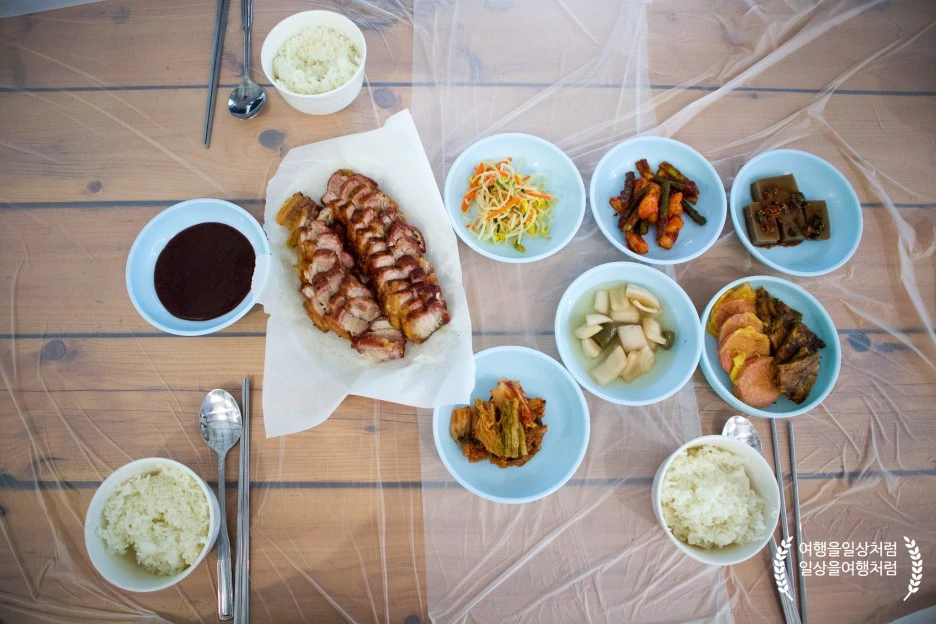 와.... 근데 여기 펜션이 아니라 맛집에 온 거 같은 착각이 들 정도로 반찬이며, BBQ, 밥과 된장국까지 완전 다 맛있어서 깜짝 놀랐다. 평소에 과식을 하는 편이 아니고 가족 전체가 소식을 하는 편인데 고기를 몇 번이나 리필해서 먹고 (무제한이라 반찬뿐만 아니라 고기도 리필해주심ㅎㅎㅎ 완전 혜자..) 밥이랑 국도 하나도 남김없이 먹고 반찬도 리필해서 먹었더니 배가 터질 거 같았다.