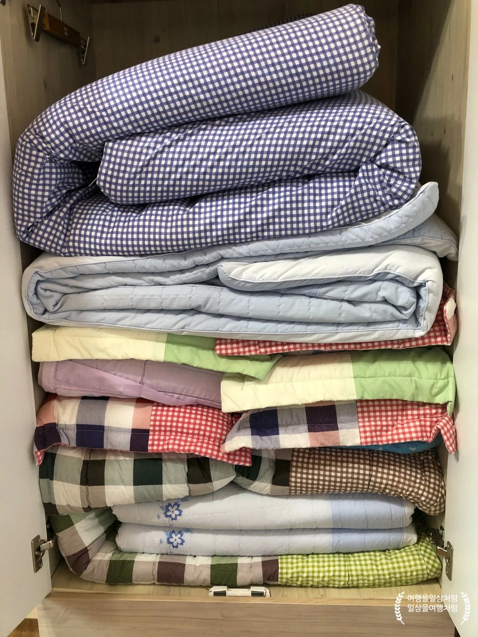 객실은 복층으로 되어 있고 1층에 침대 하나, 2층에 침대 하나가 준비되어 있고 침구류는 넉넉했다.