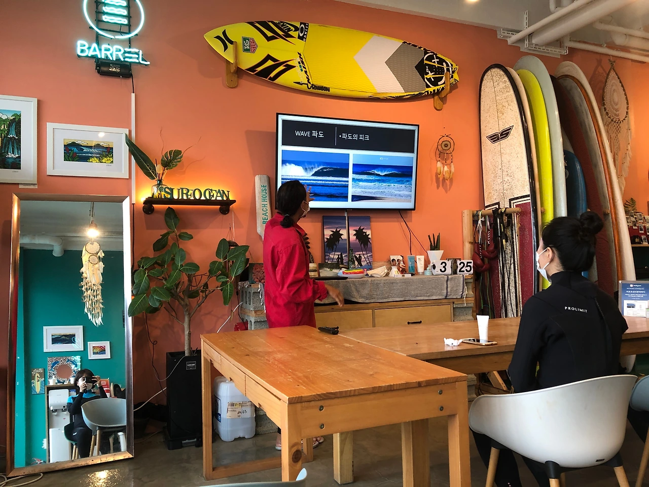 파도와 서핑에 대한 기초적인 설명이 이미 한창이었다.