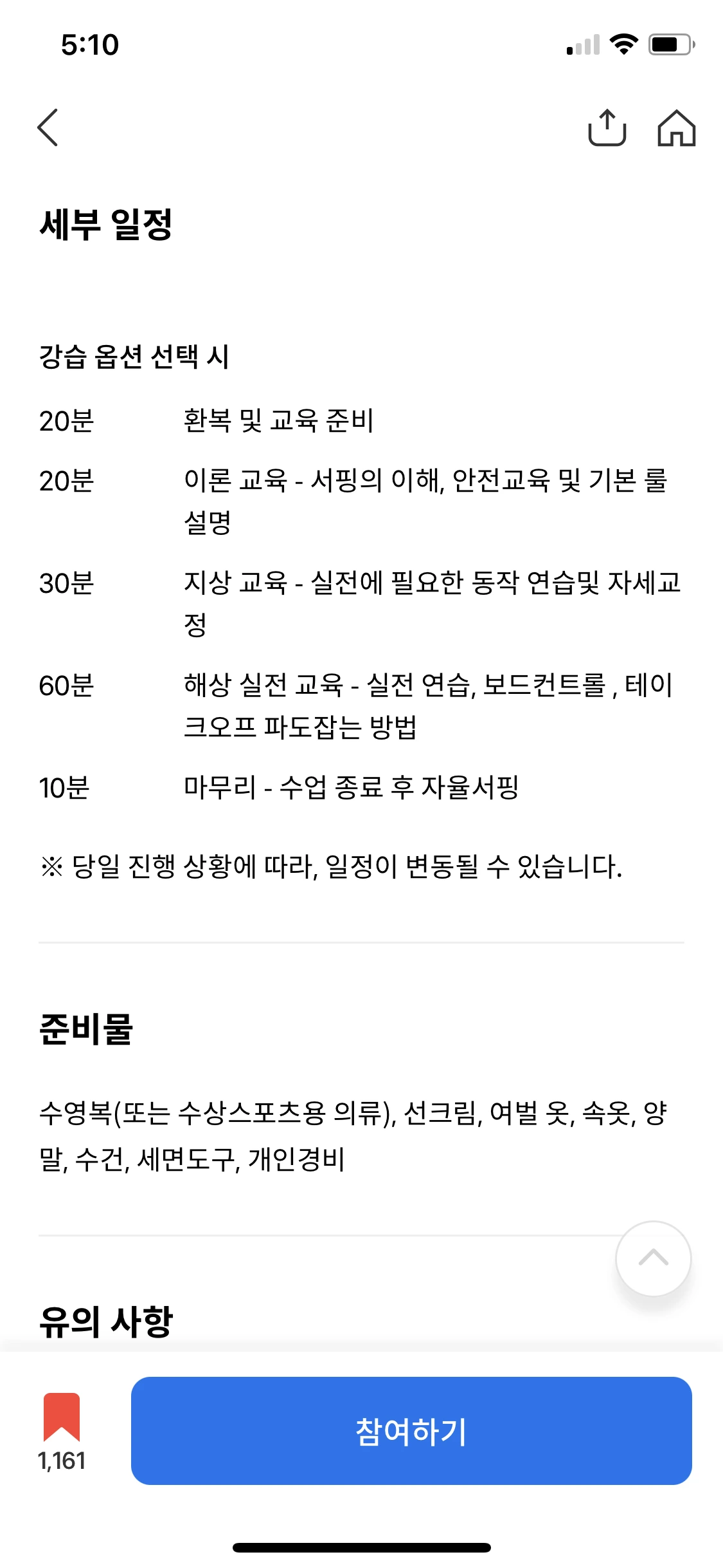 주목적이었던 서핑을 검색을 거쳐서 액티비티 플랫폼인 프립으로 두 번째로 예약하고,