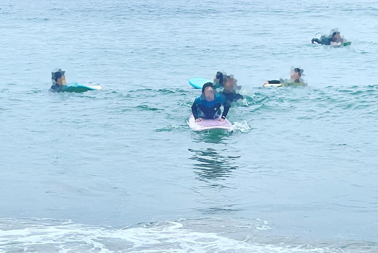 열심히 강습받은 푸시와 테이크 오프를 머릿속에서 연습하며, 파도에 몸을 맡겼다.