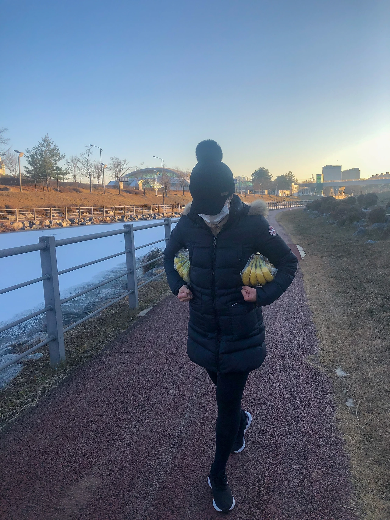 2022년 1월 2일 바나나 2송이와 함께하는 11,000보의 운동으로 약간은 힘들었지만 행복한 순간이었다.