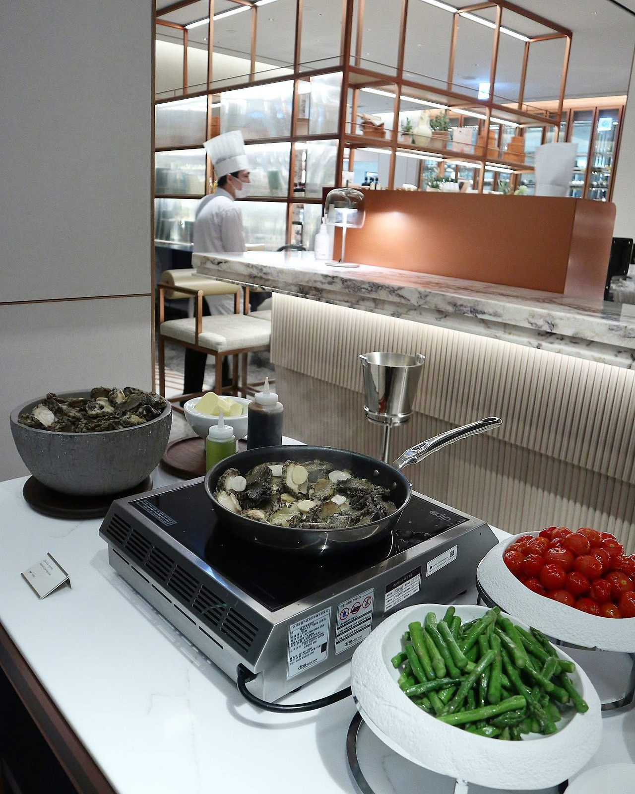 딸기 디저트돌도 맛있었지만 롯데호텔 딸기뷔페만의 장점이라면 다양하고 맛있는 핫디쉬 + 콜드디쉬 메뉴들!!! 전복구이를 시작으로 정말 다양한 식사 메뉴들이 준비되어 있었는데 하나같이 깔끔하고 맛있었다.