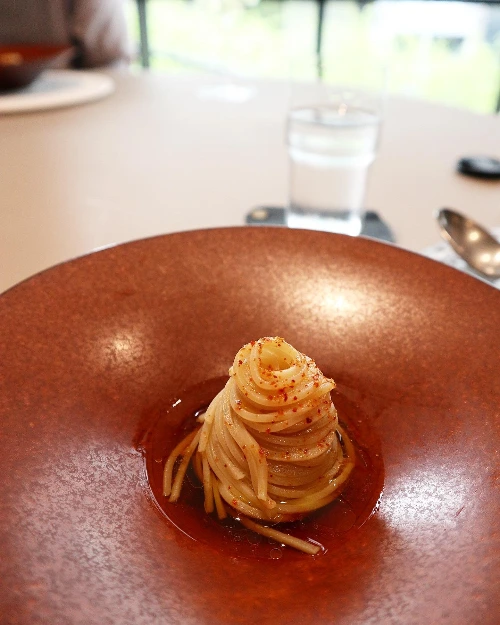 또한 음식들도 휘황찬란한 데코로 눈속임하지 않는다. 마찬가지로 그렇다고 해서 모수의 음식들이 미적으로 아름답지 않다는 말은 전혀 아니다. 음식 데코와 플레이팅 역시 과함이 없는 단정함으로 모든 맛이 조화를 이루도록 돕는다. 부족함도 없지만 넘침도 없다. 개인적인 생각으로 이 밸런스가 '모수'의 특장점이라고 생각한다.