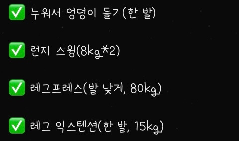 무너진 아치와 고관절 기능을 되살리고 균형을 찾아가기 위한 운동들은 익숙하면서도 낯설었다. 오늘은 특히 앞벅지를 채우는 훈련이 이어졌고, 런지 스윙을 할 때마다 심장은 미친 듯 뛰고 숨은 턱끝까지 차올랐다. 잡생각을 밀어내기에는 최고였다.