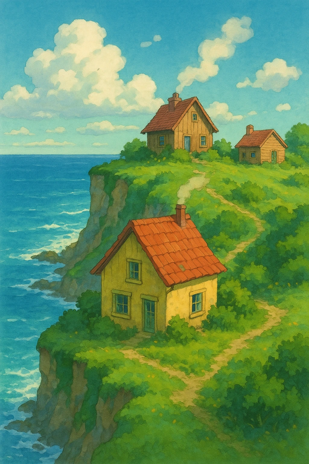 숨 막힐 듯 가파른 절벽 위에, 세련된 현대식 주택 세 채가 나란히 서 있었다.