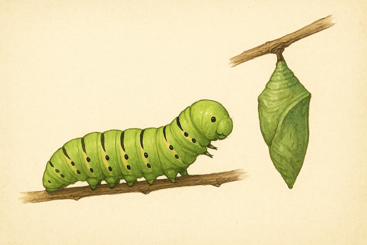 우리는 대체로 애벌레 → 번데기 → 나비로 완전 변태하는 생을 닮은 삶을 살아갑니다. 학창 시절에는 열심히 공부해 성인이 되고, 사회의 일원으로서 역할을 다하며, 안정된 가정을 꾸리고 나비가 되려 노력합니다.