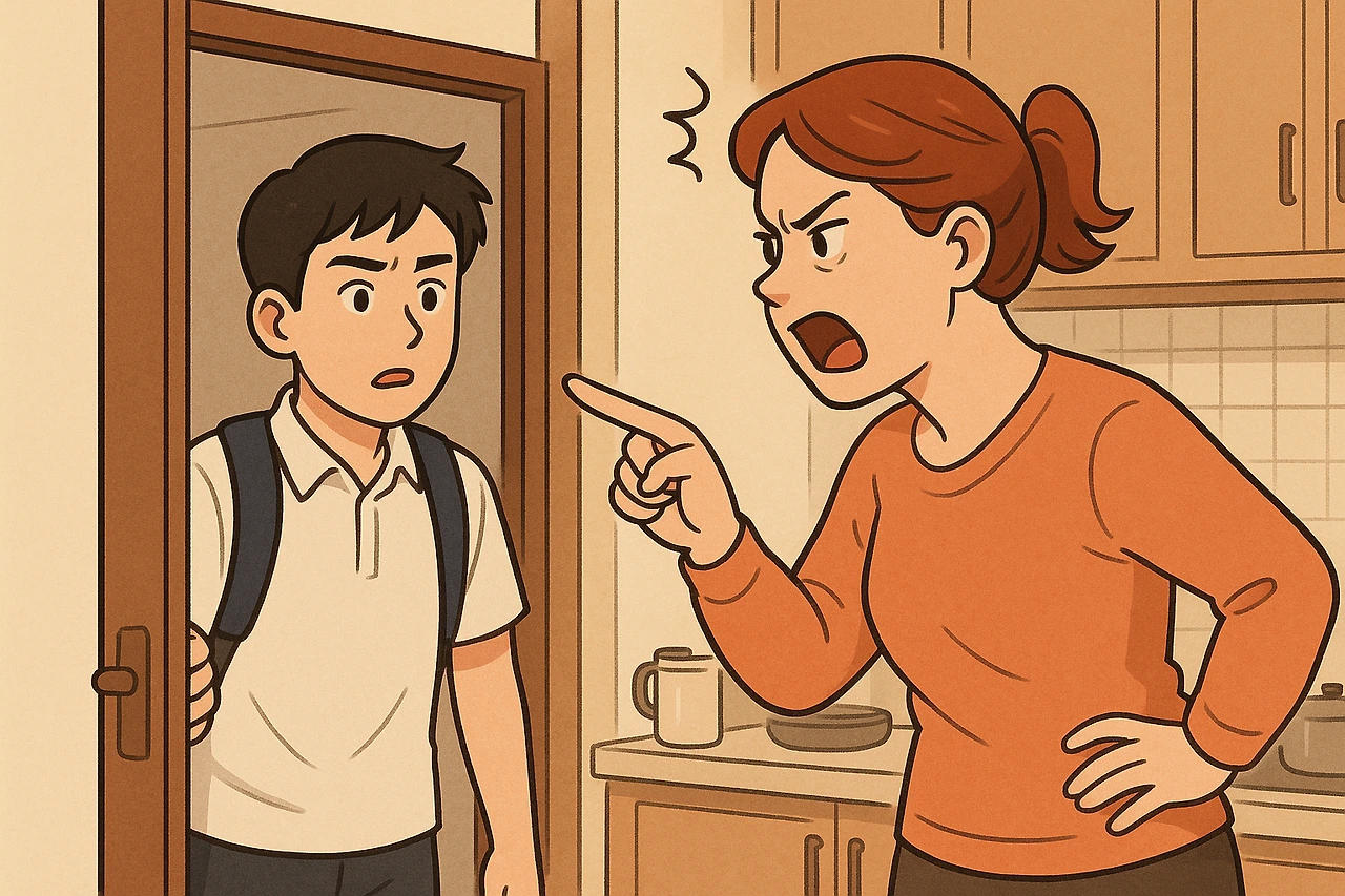 “또 늦잠 잤지? 알람은 왜 맞춰놓고 안 들어? 여덟 시가 다 돼 가네! 오늘 또 지각하는 거 아니야? 어제도 늦었잖아. 얼른 씻고 준비해!”